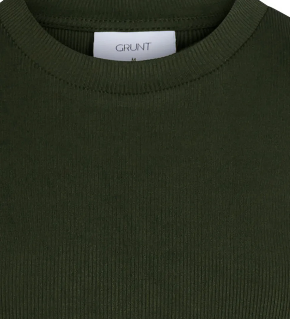 Fin Grunt top i ensfarvet armyrgrøn med en fin ribstruktur.