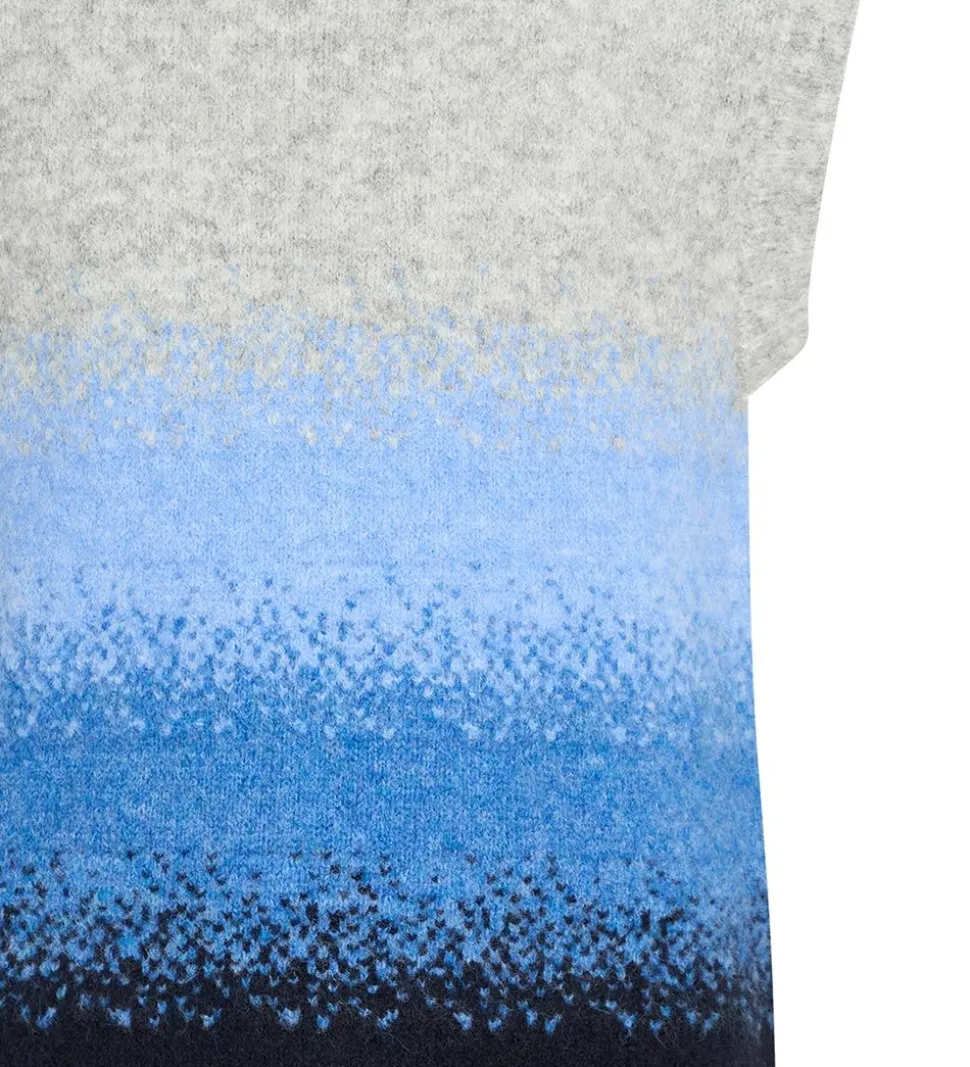 Flot Grunt vest i meleret grå, blå og navy strik.