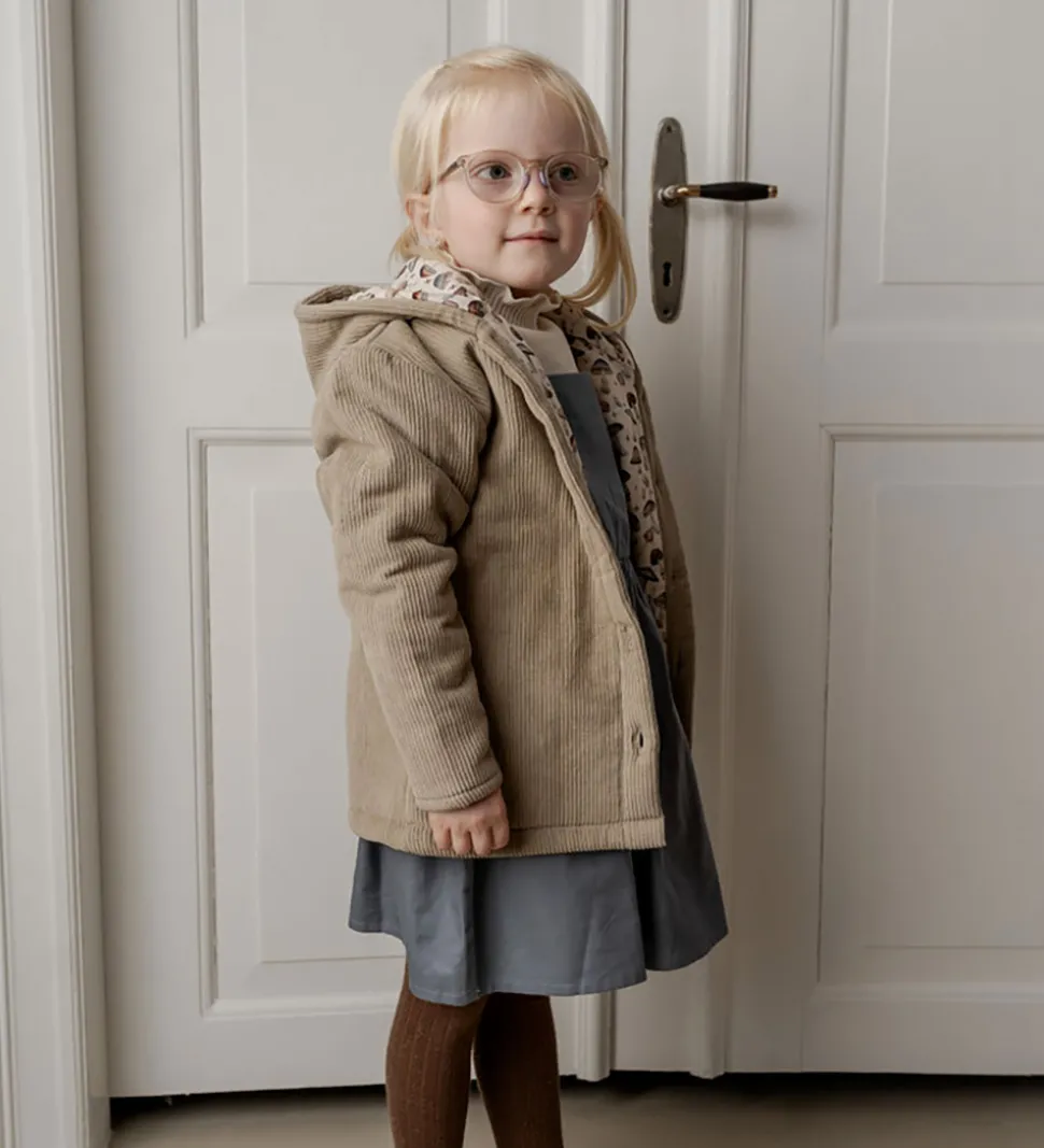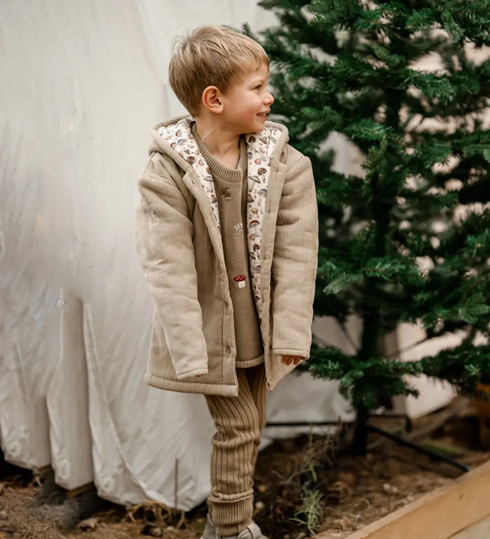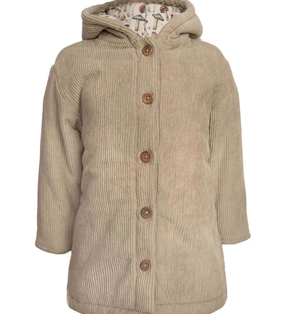 Flot Hanevild jakke i en varm, beige nuance og med en lækker fløjlstruktur. Hanevild jakken har lange ærmer og en praktisk hætte. Indvendigt er der et fint svampeprint, som giver et charmerende udtryk. Jakken åbnes fortil med gennemgående træknapper.