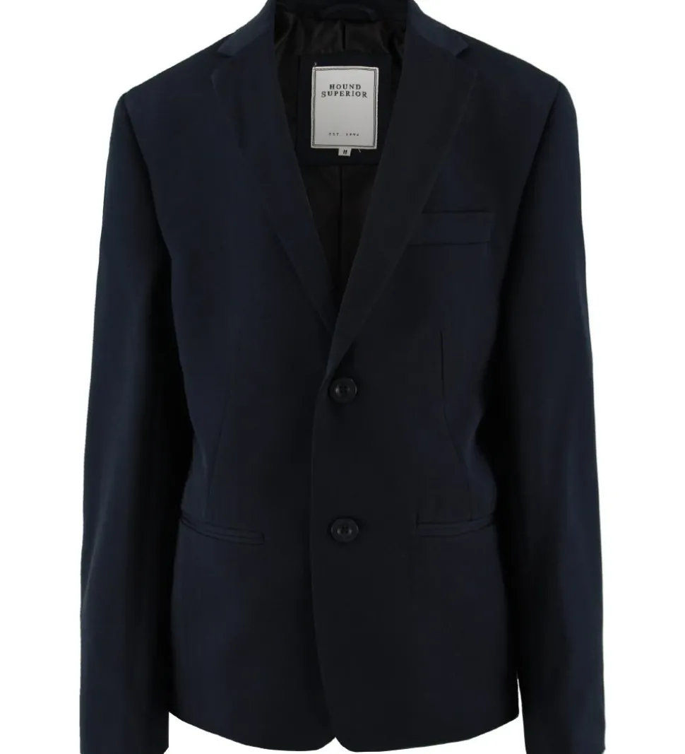 Hound blazeren har en klassisk krave, og den lukkes fortil med to knapper. Blazeren har to vandrette lommer på fronten samt en brystlomme i venstre side. Derudover har blazeren også en inderlomme i venstre side. Ærmerne er dekorerede med tre fine knapper. Blazeren er en klassisk model, og på ryggen er der to slidser i bunden.