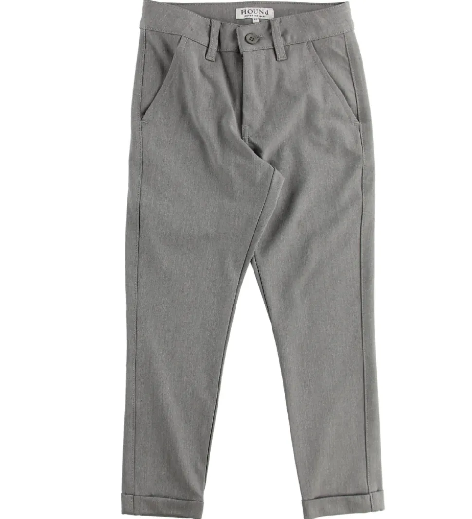 Hound chinosene har en justerbar elastikkant i livet og praktiske bæltestropper. Bukserne åbnes fortil med knap og lynlås. Fortil har bukserne gode dybe lommer i hver side, og paspoleret lommer bagpå. Bukserne har smarte ombuk på buksebenene.