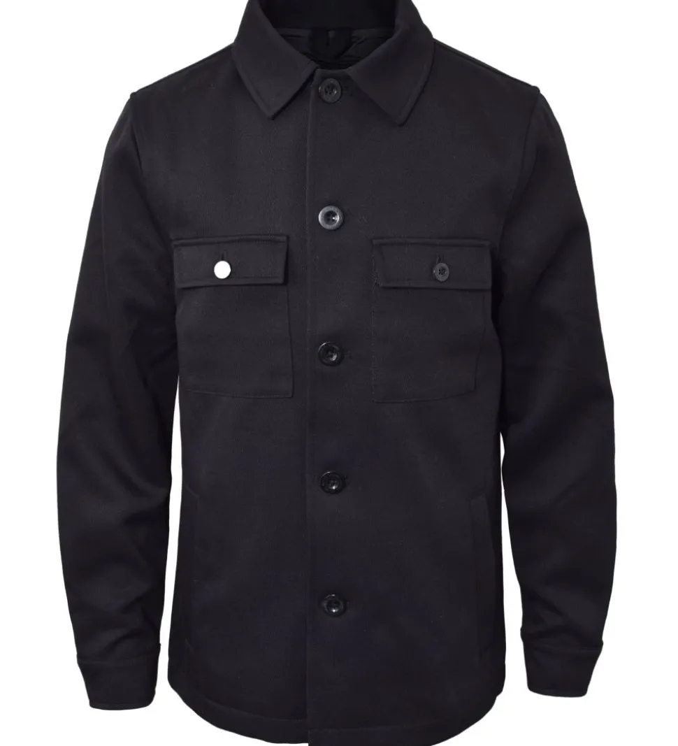 Hound jakken har er der en klassisk krave i halsåbningen samt lange ærmer med brede kanter med en manchetknap. Den åbnes med gennemgående knapper fortil, og på brystet er der en lommer i hver side, som åbnes med knapper. Den har også to normale lommer, og den er lavet i en let og behagelig kvalitet.