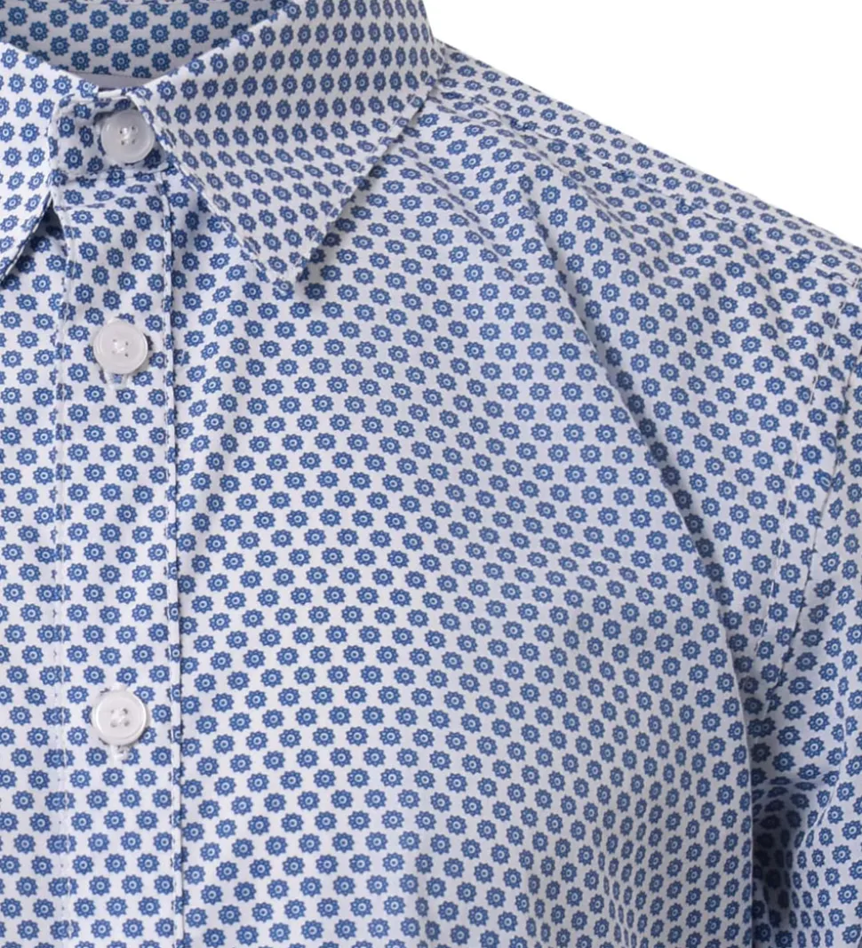 Smart Hound skjorte i hvid med et alloverprint i mørkeblå med små sole.
