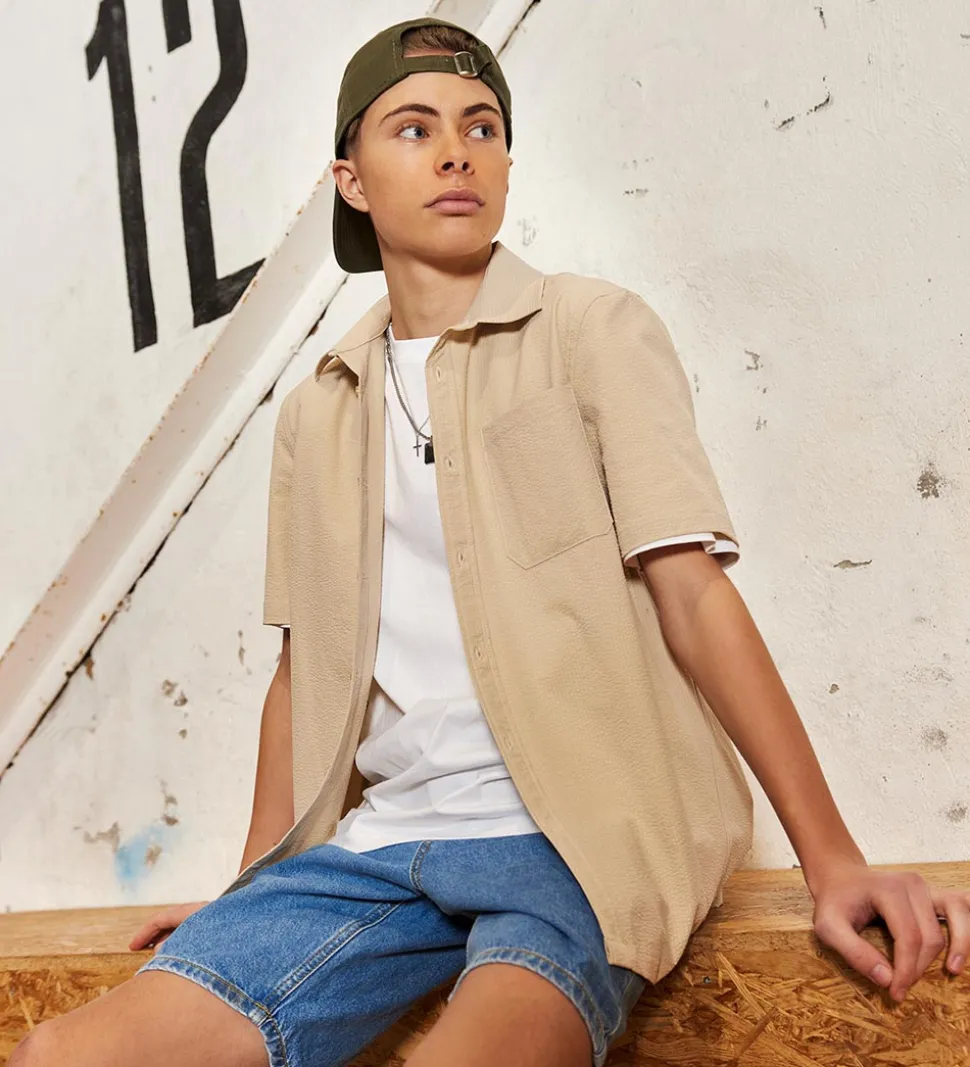 Sød Hound skjorte i ensfarvet sand med en flot struktur.