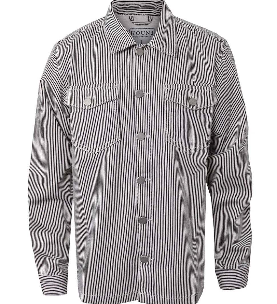 Stilren Hound skjorte med smalle striber i hvid og sort, med knapper i metal.