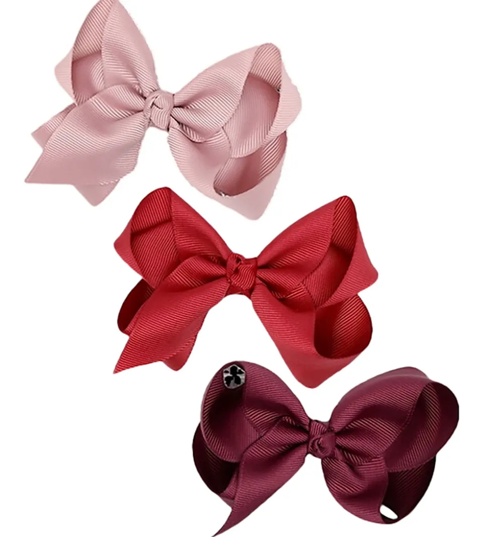 Flot teHust and Claire hårsløjfer solgt i en 3-pak i rosa, rød og lilla grosgrain.
