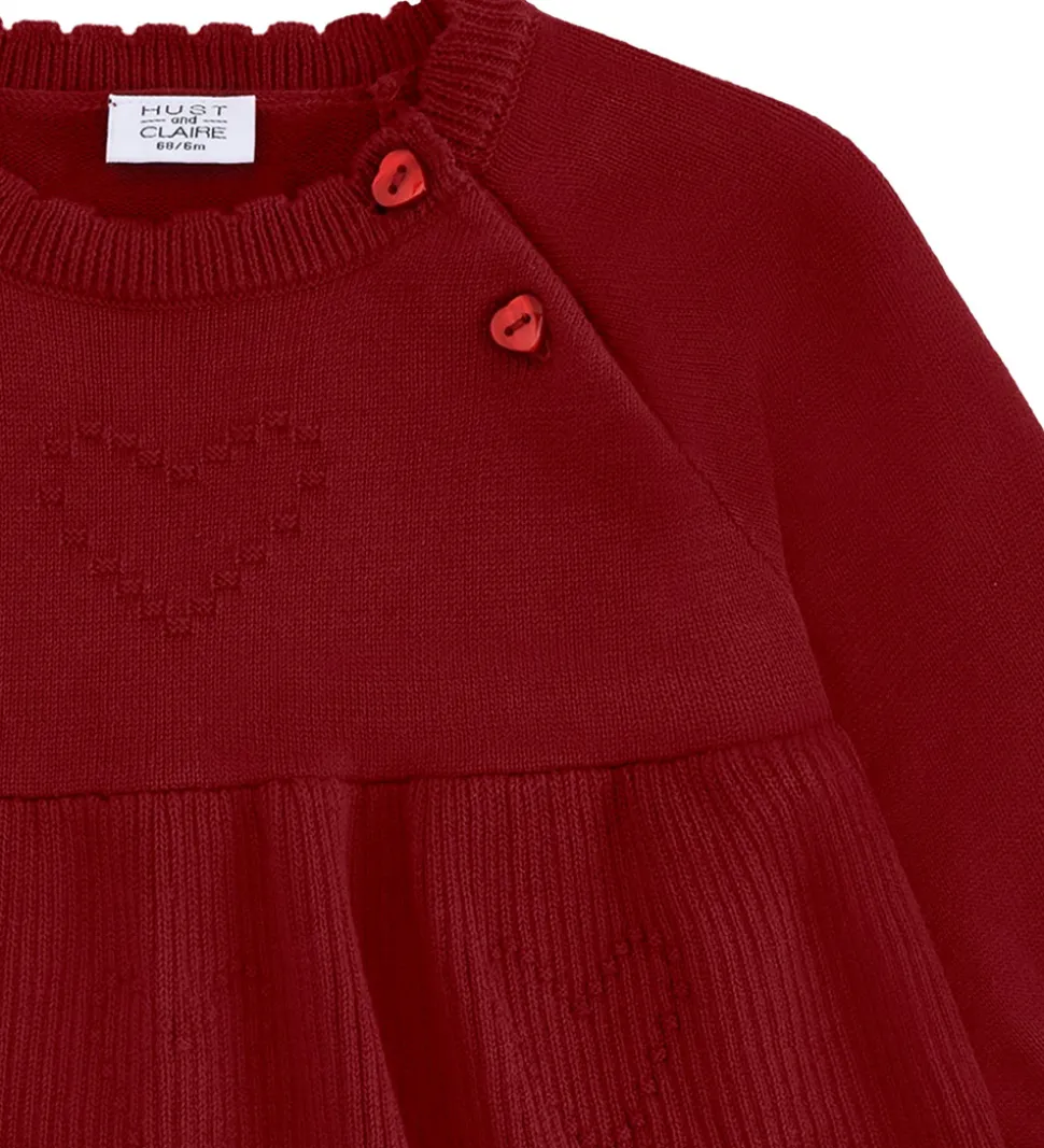 Elegant Hust and Claire kjolebody i en dyb rød farve i en strikket kvalitet med fine hjerter.