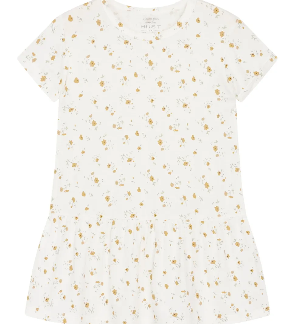 Elegant Hust and Claire natkjole med et blødt design i hvidt dekorativt med små gule blomster over hele stoffet.