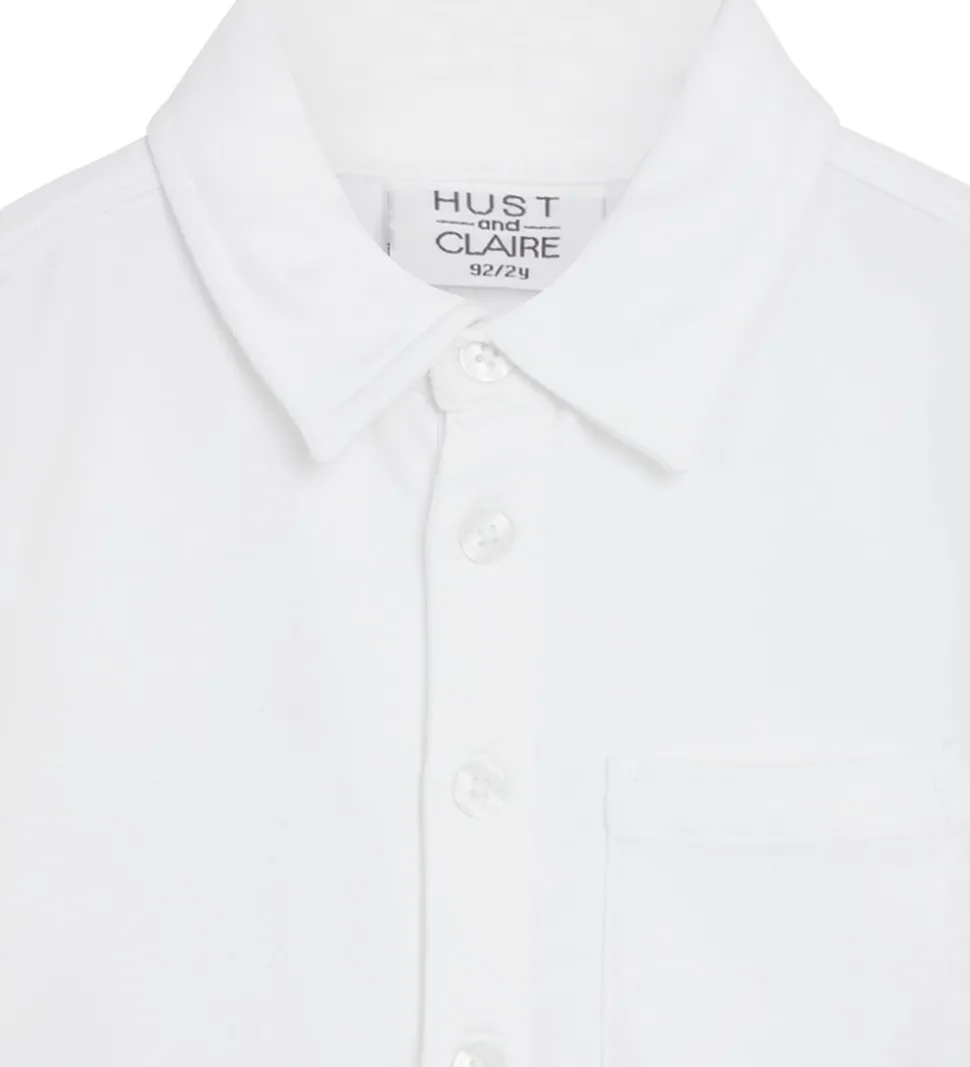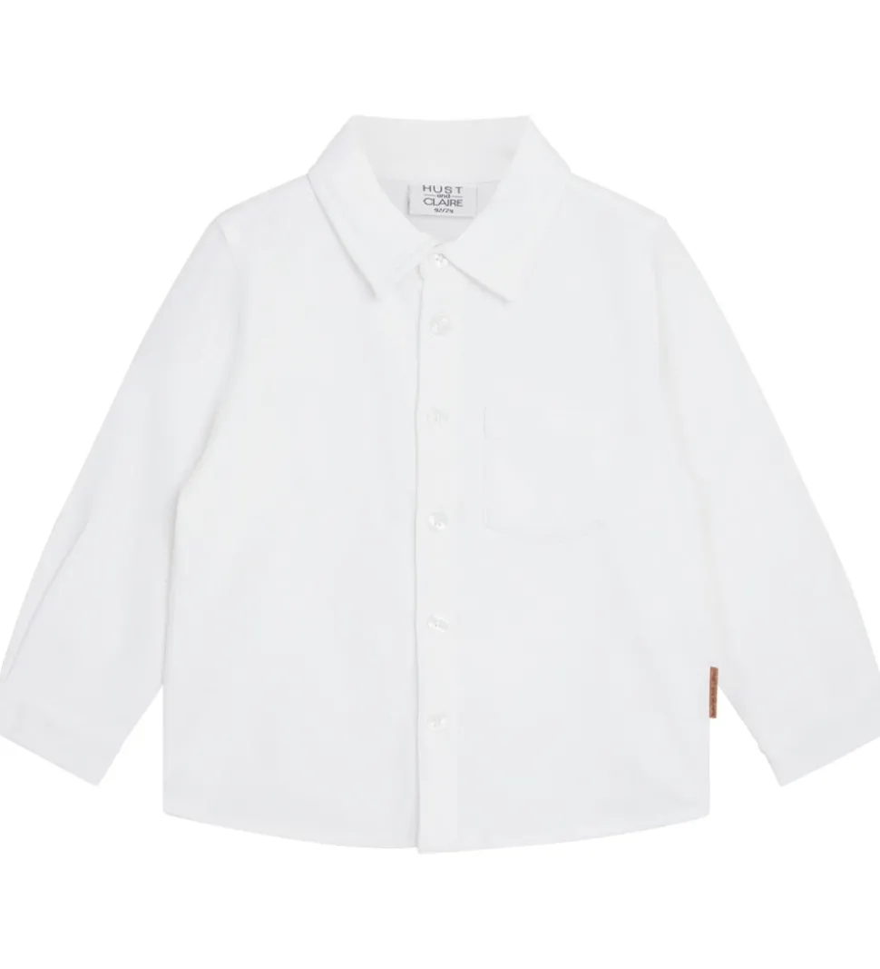 Elegant Hust and Claire skjorte i hvid med lange ærmer og klassisk krave. Skjorten har en praktisk lomme på brystet og gennemgående knapper fortil. Et tidløst design, der passer til enhver anledning.