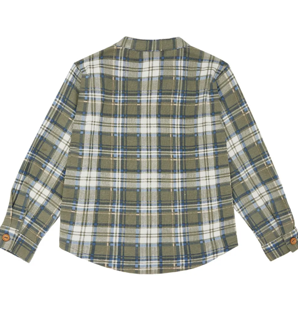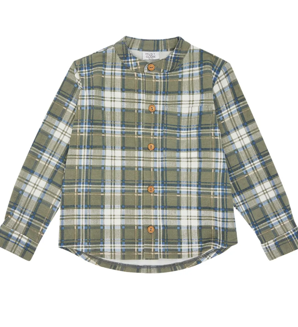 Fin Hust and Claire skjorte i et klassisk ternet mønster i nuancer af grøn, blå, beige og hvid.