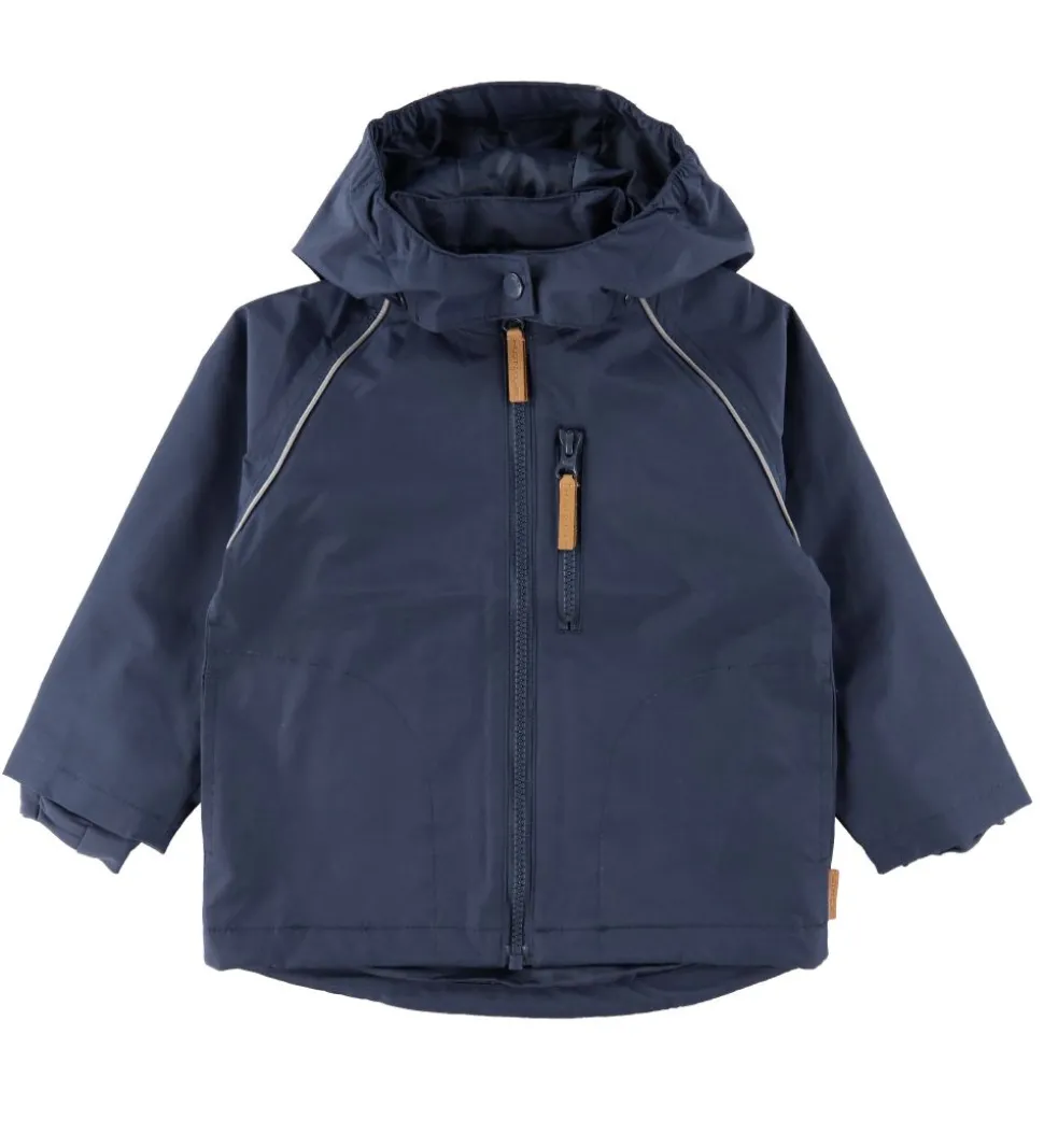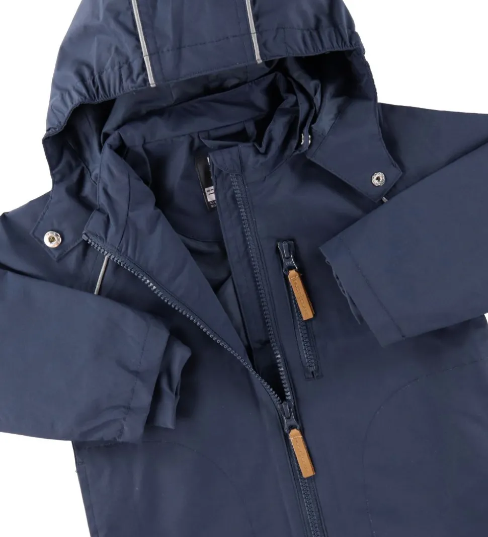 Fin Hust and Claire sommerjakke i mørkeblå med reflekspipings omkring skuldrene og på hætten.