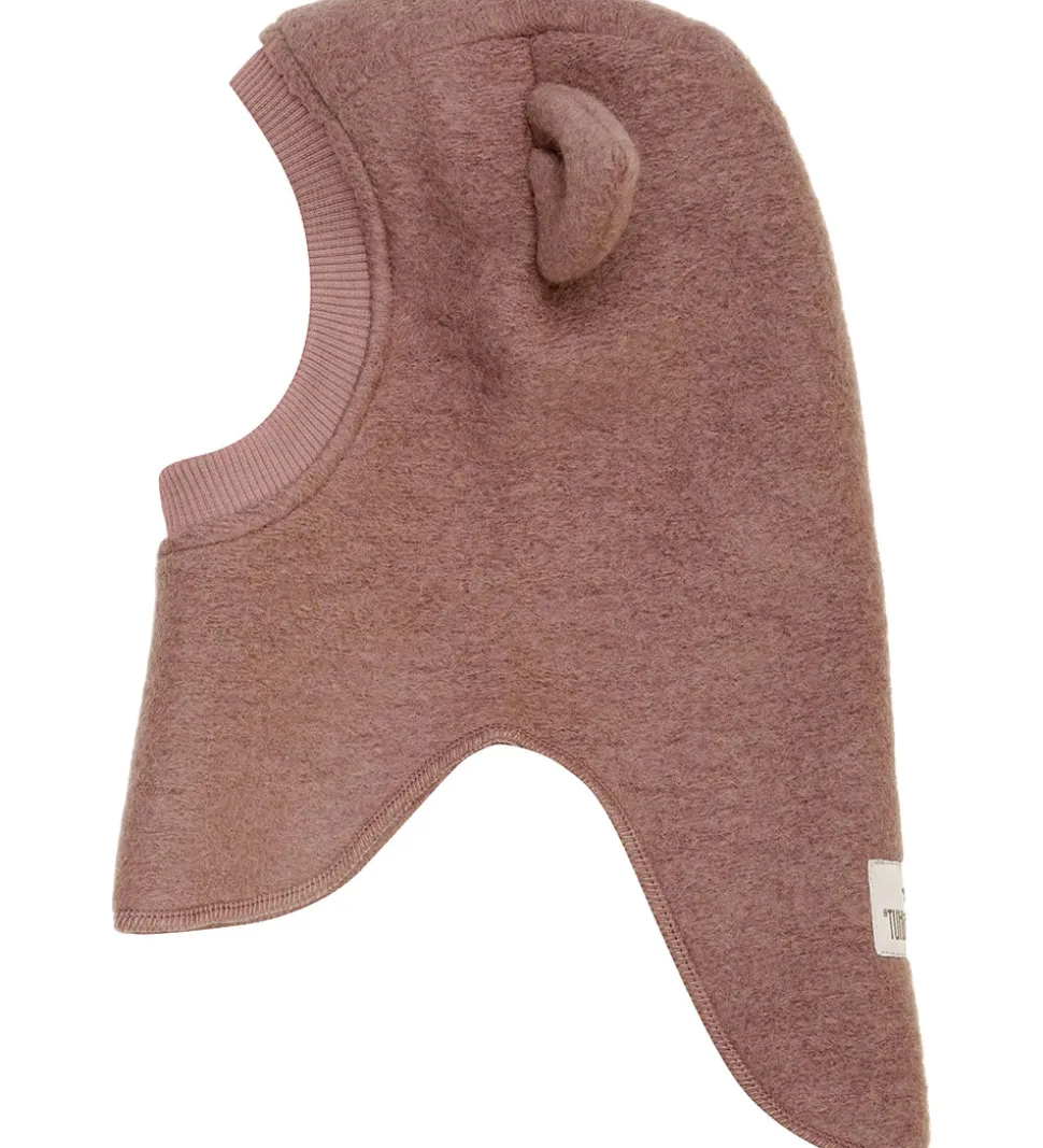 Dejlig Huttelihut elefanthue af lunt uldfleece i en støvet, rosa nuance. Huttelihut elefanthuen har en rund hovedform med små ører og består af to lag, der giver ekstra varme. Elefanthuen har en ribkant, der sikrer en god pasform.