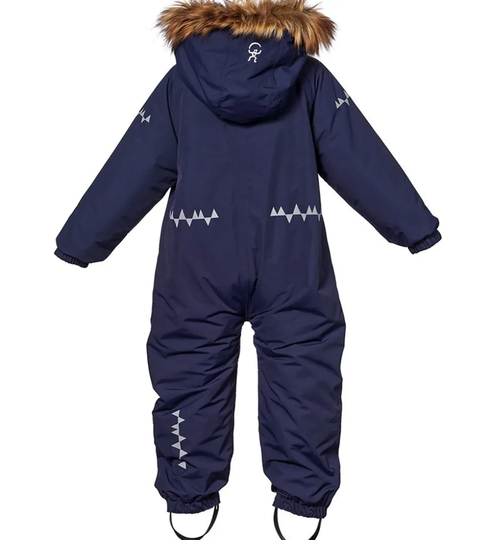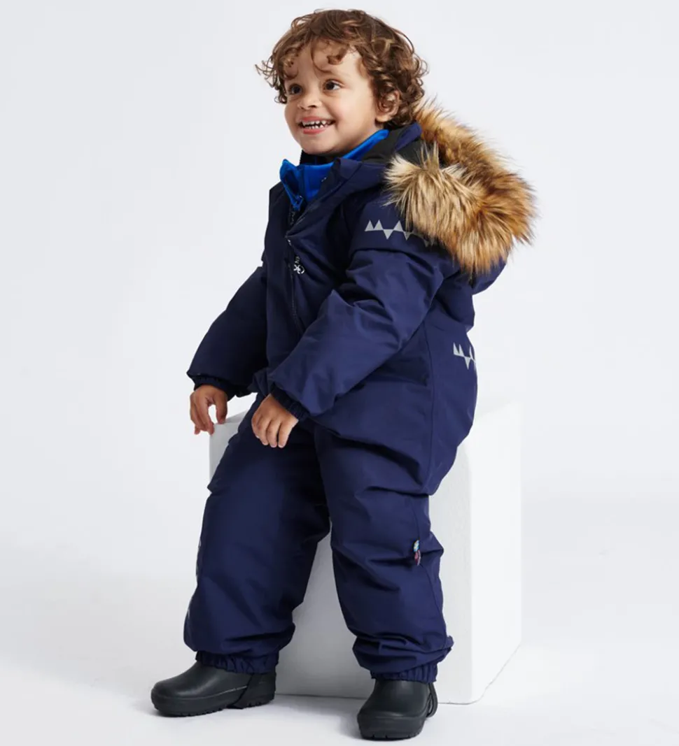 Skøn Isbjörn Of Sweden flyverdragt i navyblå. Flyverdragten har hvide logoprint på venstre bryst og hætten samt smarte refleksprint på lænden, begge skuldre og ankler.