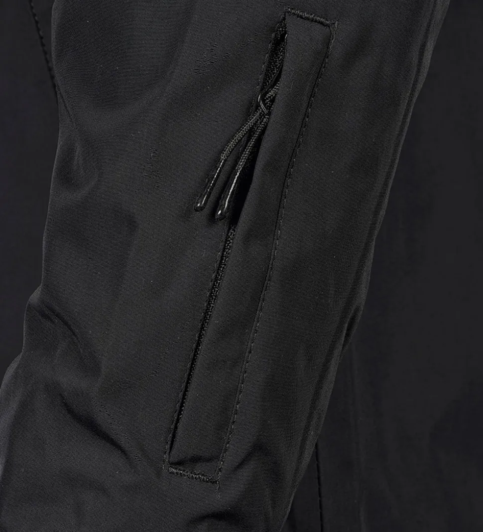 Ærmernes åbninger har velcrojusteringer og snefang med brede, elastiske kanter.