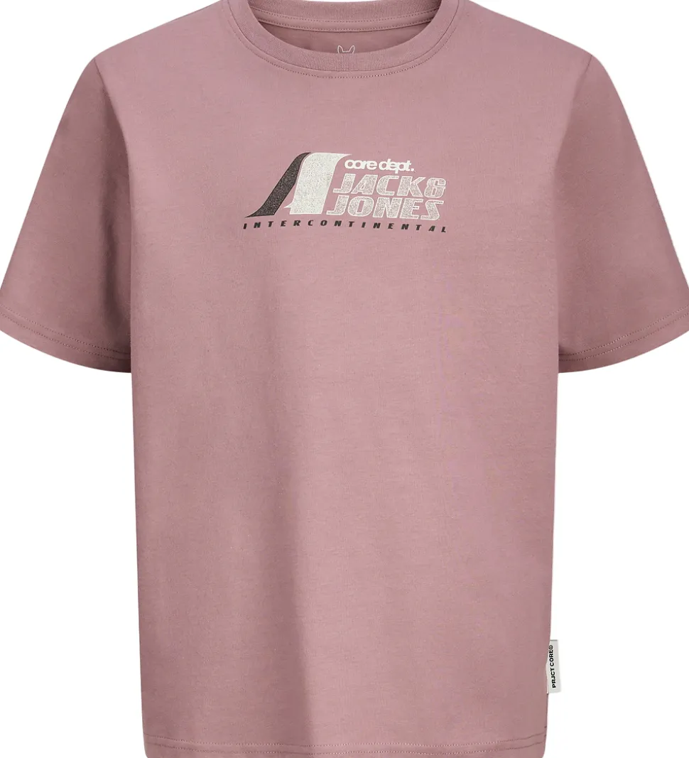 Smart Jack & Jones t-shirt i en støvet lilla nuance med et sporty logoprint på fronten. Jack & Jones t-shirten har en klassisk rund halsudskæring samt korte ærmer, der giver et tidløst design.