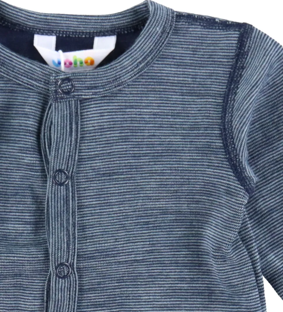 Behagelig Joha heldragt i en flot navyblå farve med smalle striber i en lysere nuance.