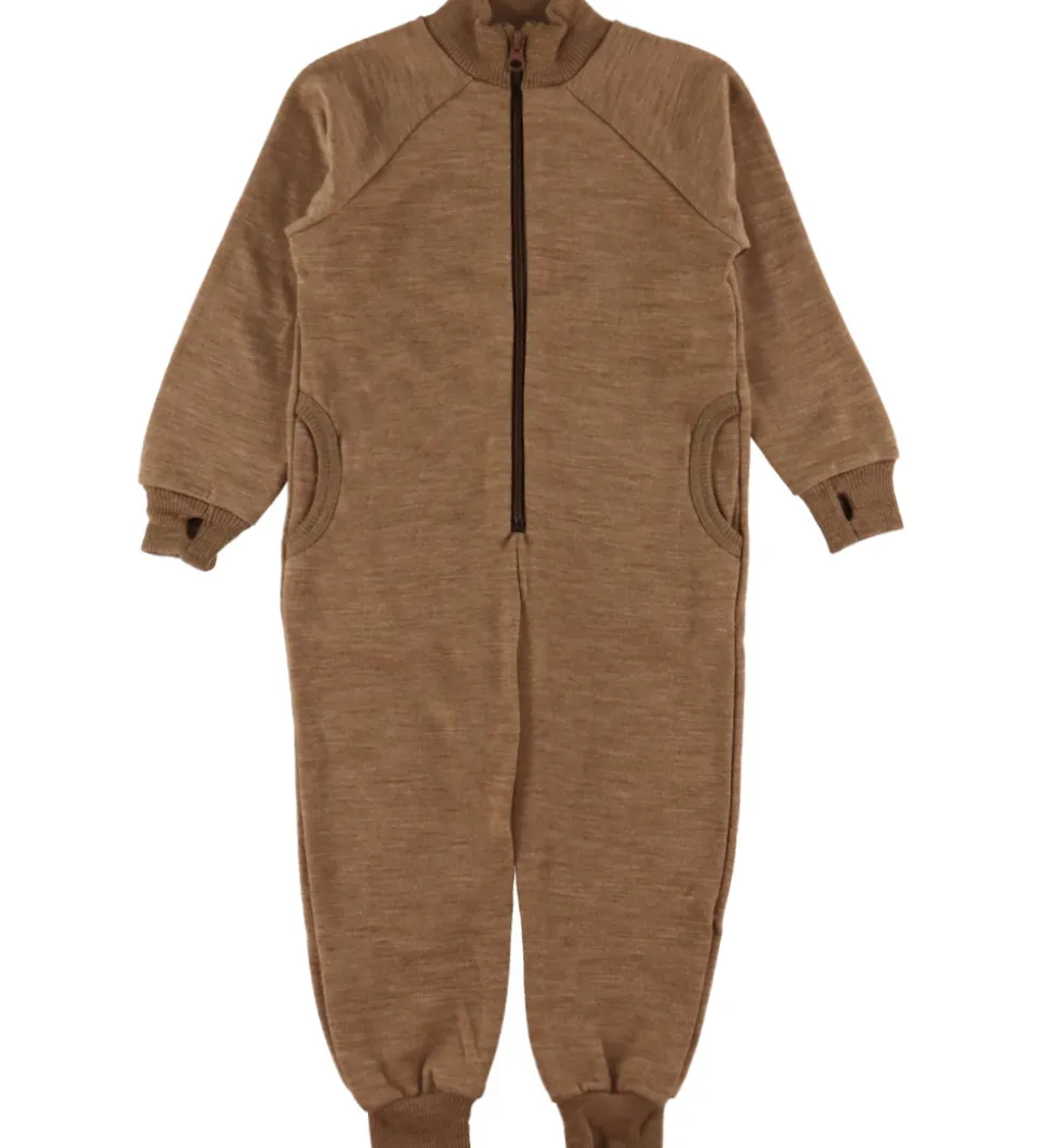 Praktisk Joha heldragt i en ensfarvet brun nuance. Joha heldragten er designet med lange ærmer og ben, og har en lodret lynlås fortil, der giver nem adgang.