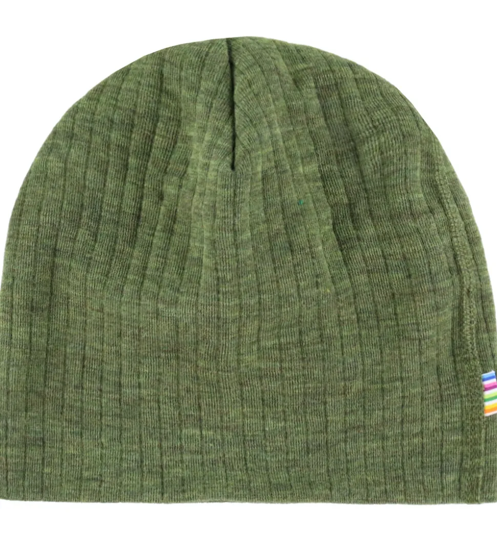 Elegant Joha hue i en mørk, olivengrøn farve med en ribbet struktur. Johas enkle design gør den tidløs og anvendelig til alle årstider. Ribstrikken giver huen en unik tekstur og et nutidigt udtryk.
