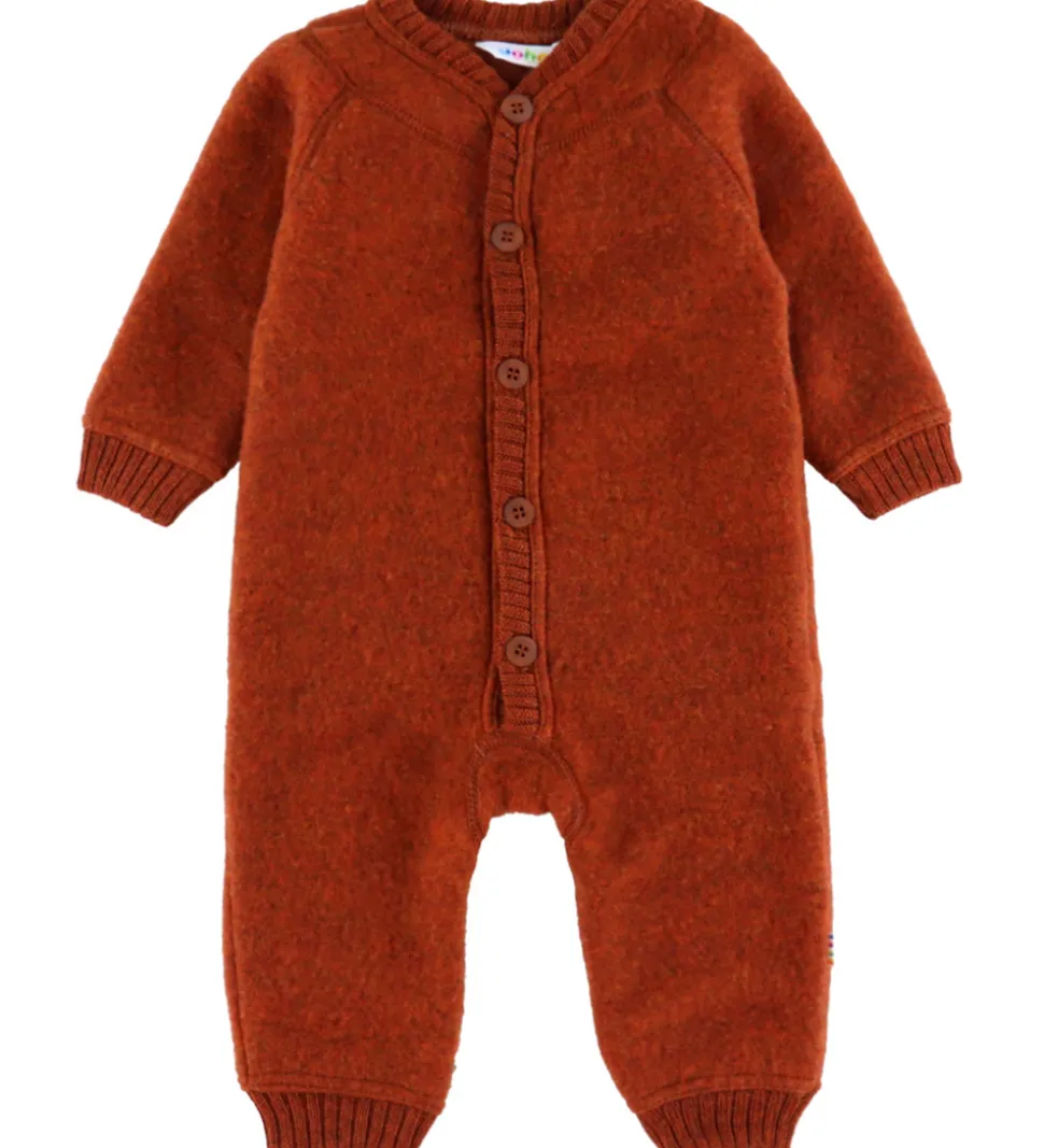 Joha køredragten er fremstillet af en kraftig, filtet merinouldskvalitet, der kan holde barnet dejlig varm på de kølige dage.