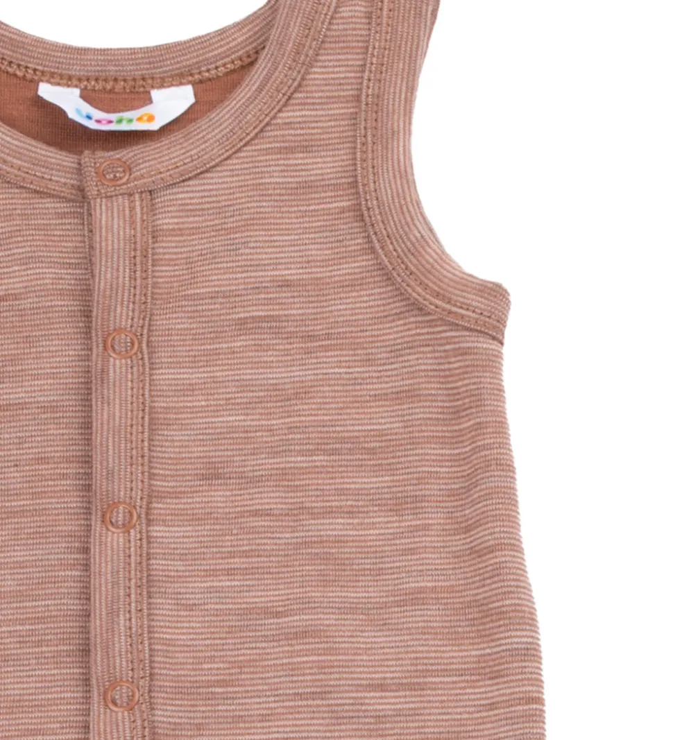 Dejlig Joha sparkedragt i en rustbrun nuance med fine, smalle striber.