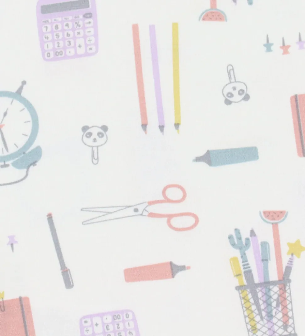 Fine Joha trusser i hvid med et alloverprint af forskellige skoleartikler og rosa kanter. Trusserne har en elastisk talje, som giver en god pasform.