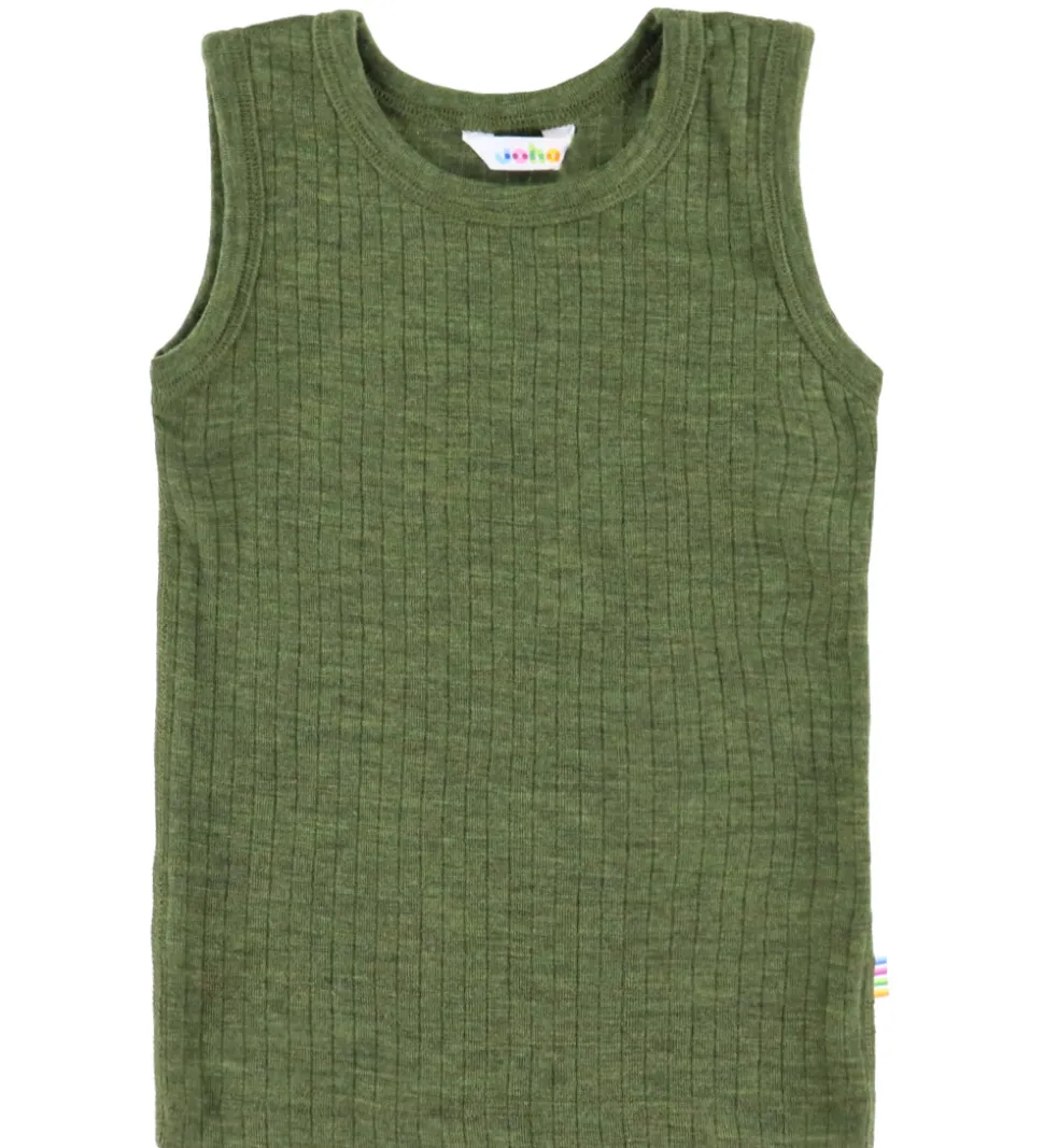 Flot Joha undertrøje i en smuk, olivengrøn farve. Undertrøjen har en ribbet struktur, der giver et moderne udtryk. Den er uden ærmer og har en rund halsudskæring, som sikrer en flot pasform. Et lille Joha mærke pryder toppen af undertrøjen.
