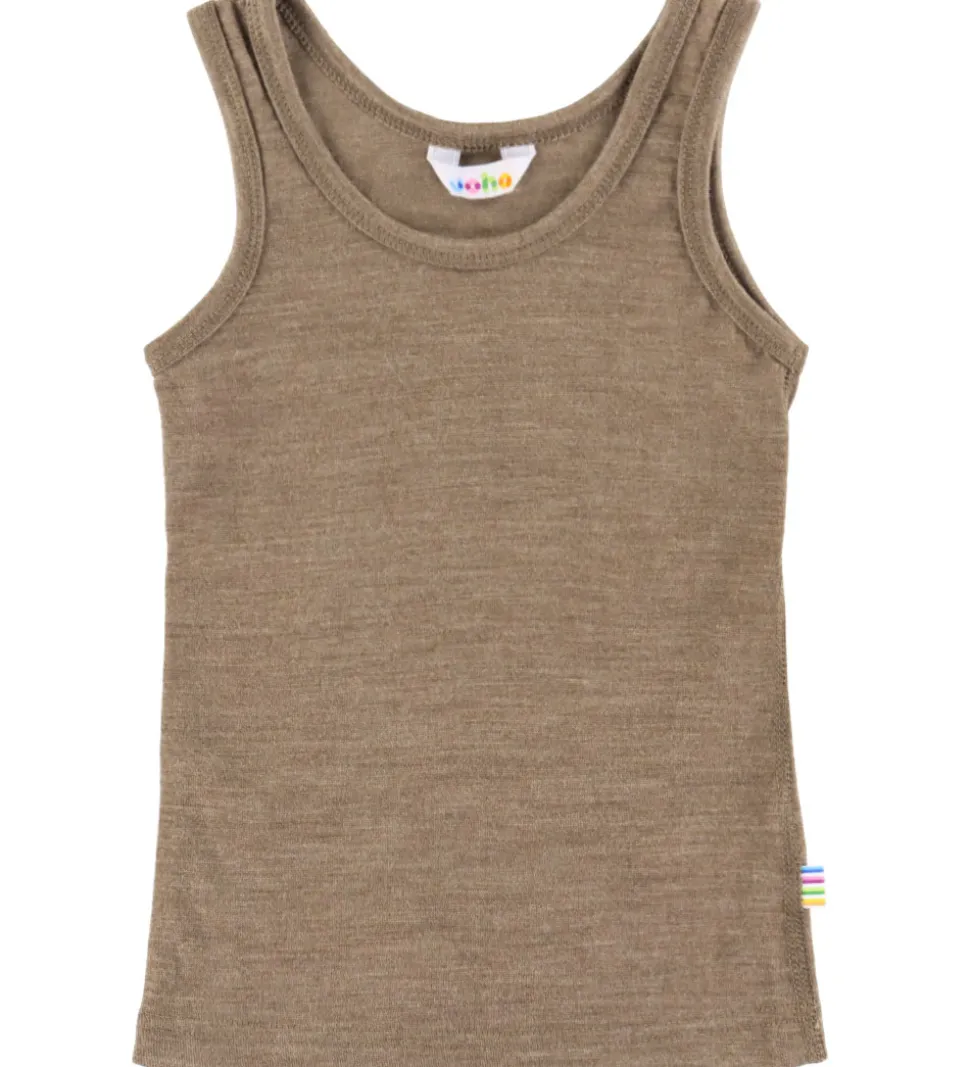 Blød Joha undertrøje i en ensartet brun farve. Undertrøjen har en enkel struktur med brede stropper, som giver et klassisk udseende. En lille, flerfarvet etiket er placeret i siden og tilføjer et diskret farvespil. Joha tilbyder her et stilrent og tidløst design til garderoben.