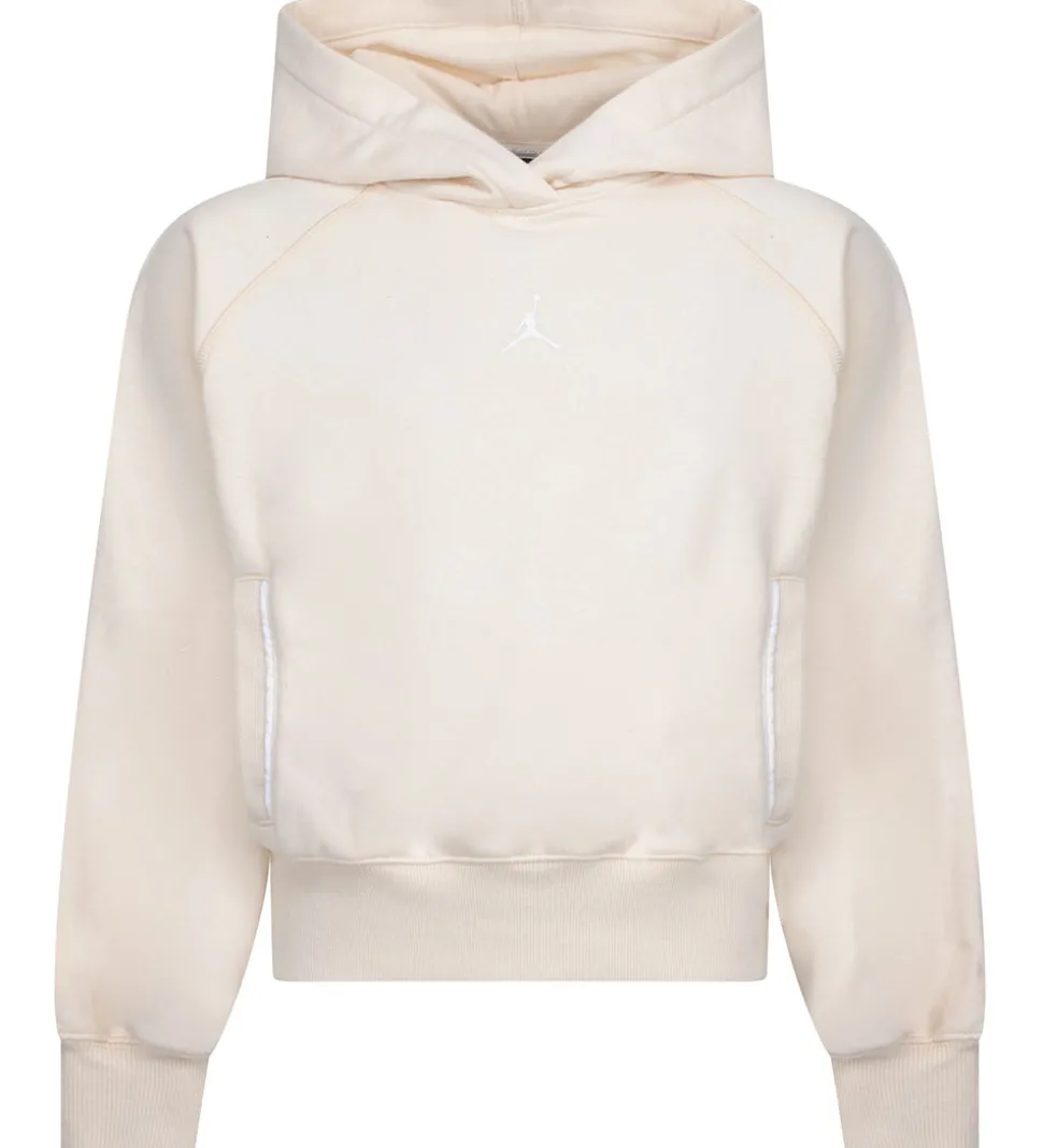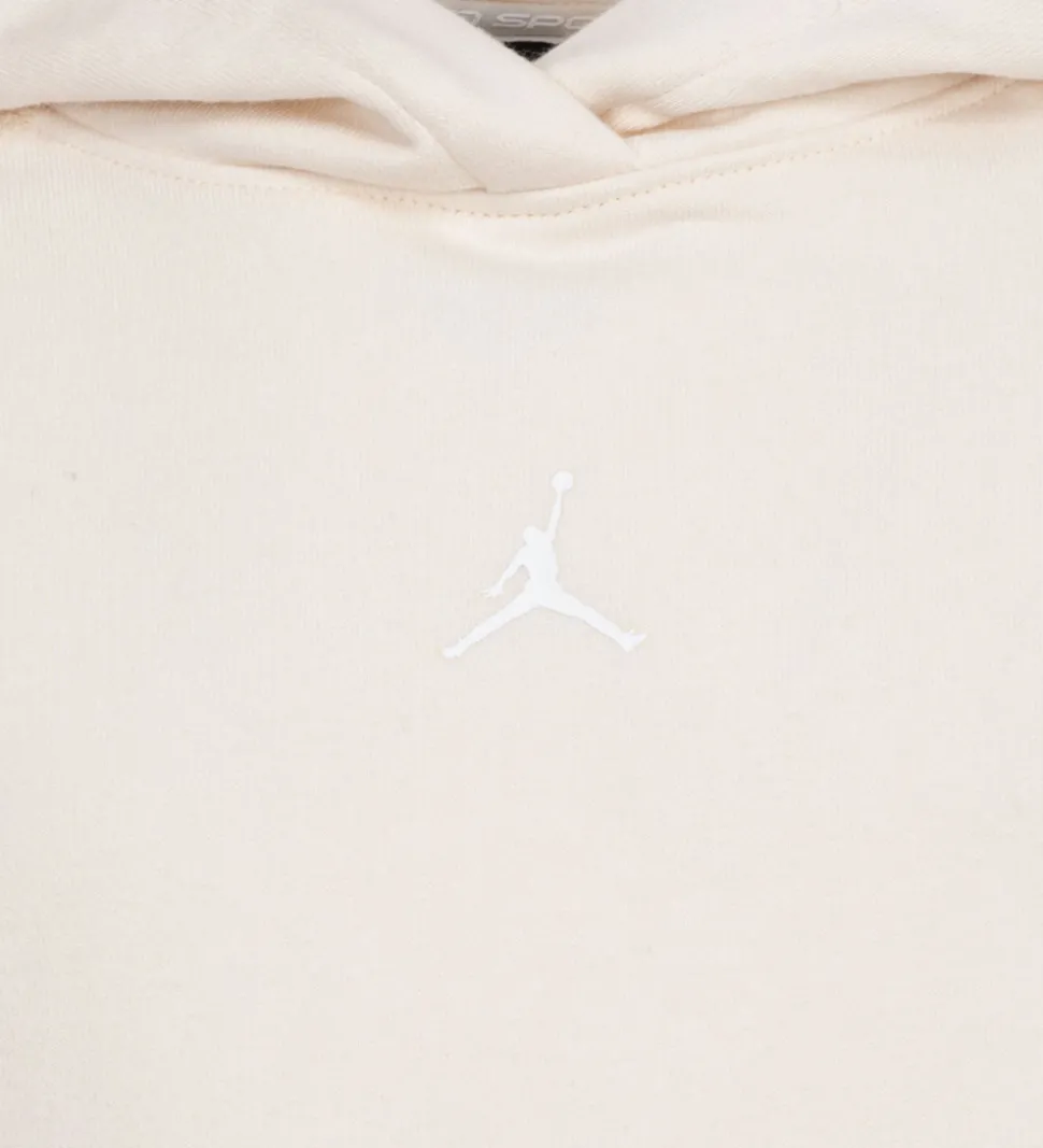 Lækker Jordan hættetrøje i en lys rosa farve med et stilrent logoprint i hvid på fronten. Hættetrøjen har lange ærmer og en klassisk hætte, som giver et moderne look. På ydersiden af ærmerne er et smart logobånd, med teksten “Jordan Sport”, og fortil har hættetrøjen en praktisk kængurulomme.