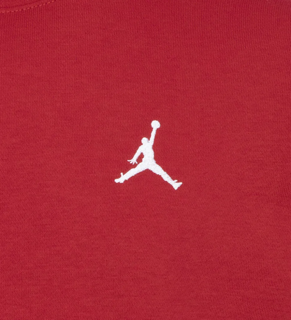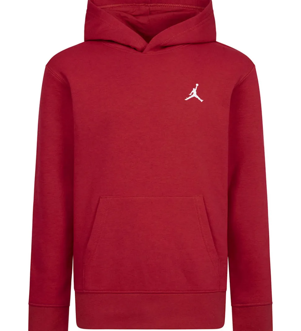 Smart Jordan hættetrøje i rød med et hvidt jumpman-logo broderet på brystet. Jordan hættetrøjen har en en fastsyet hætte med for og en praktisk kængurulomme på maven. Derudover har hættetrøjen brede ribkanter ved håndleddene og i livet, hvilket sikrer en optimal pasform, og den er med blød, børstet bomuld indvendigt.