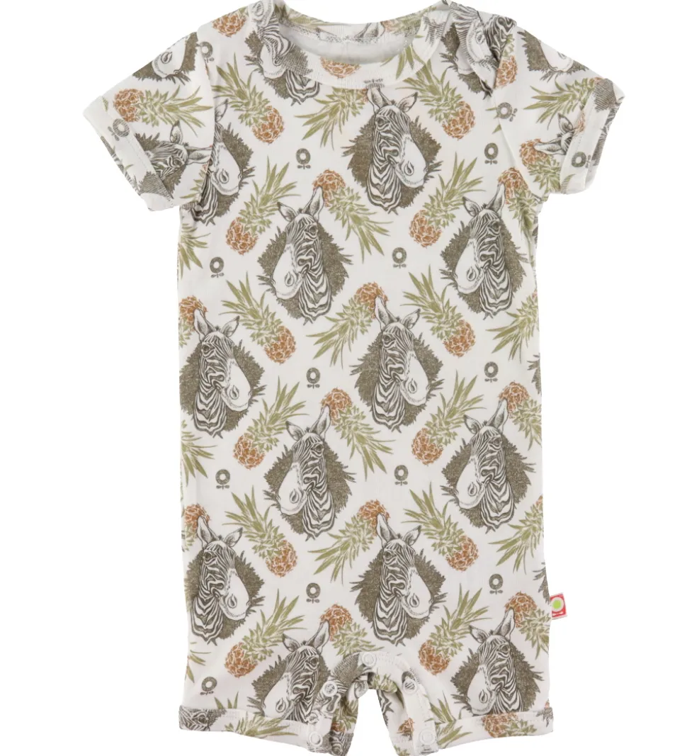 Nydelig Katvig sommerdragt i hvid med et tropisk alloverprint af zebra og ananas i grønne og brune farver.