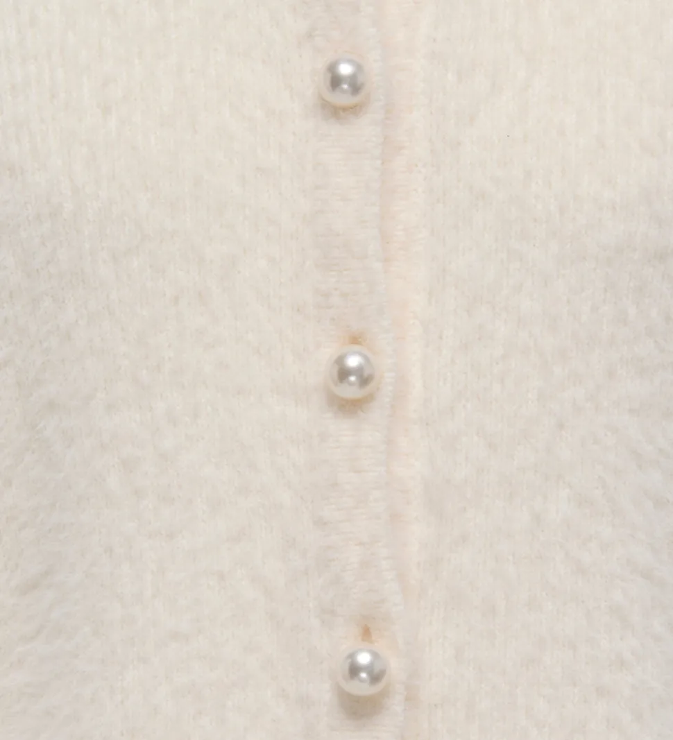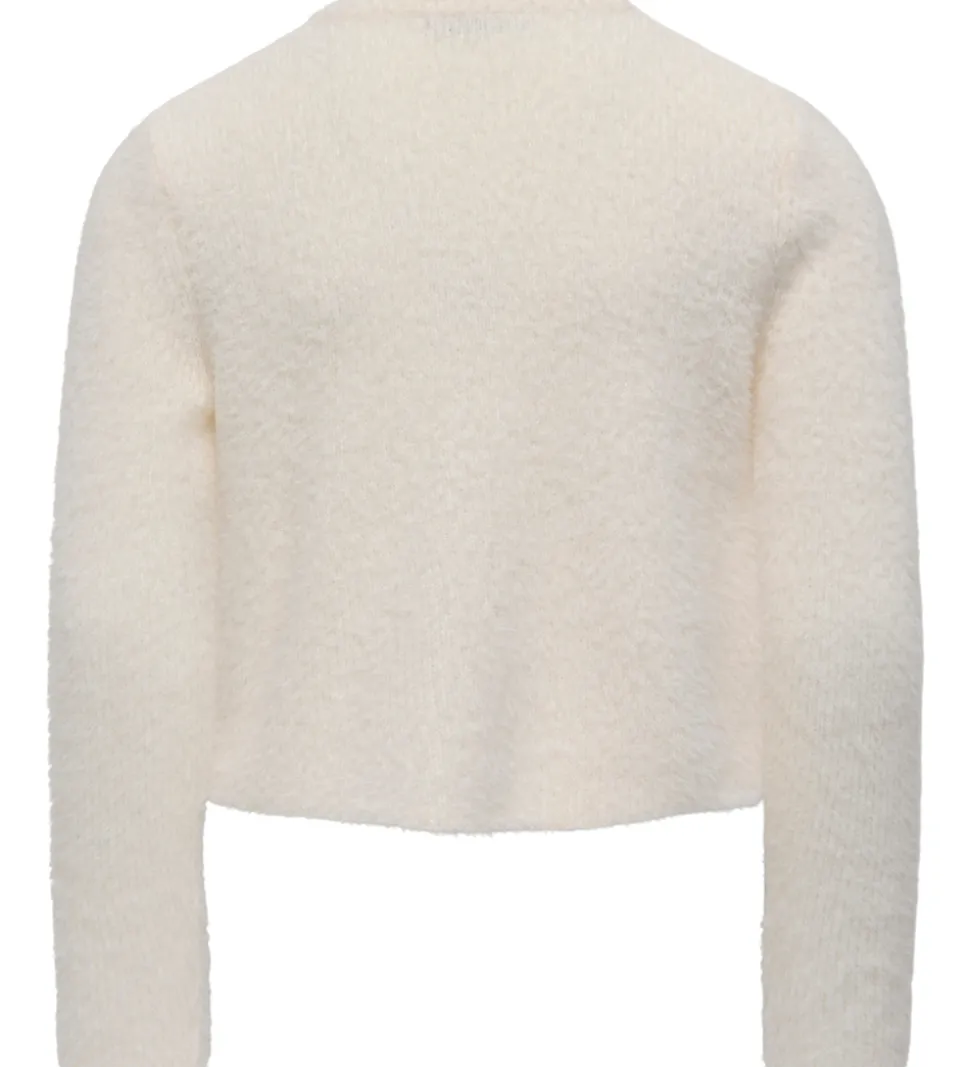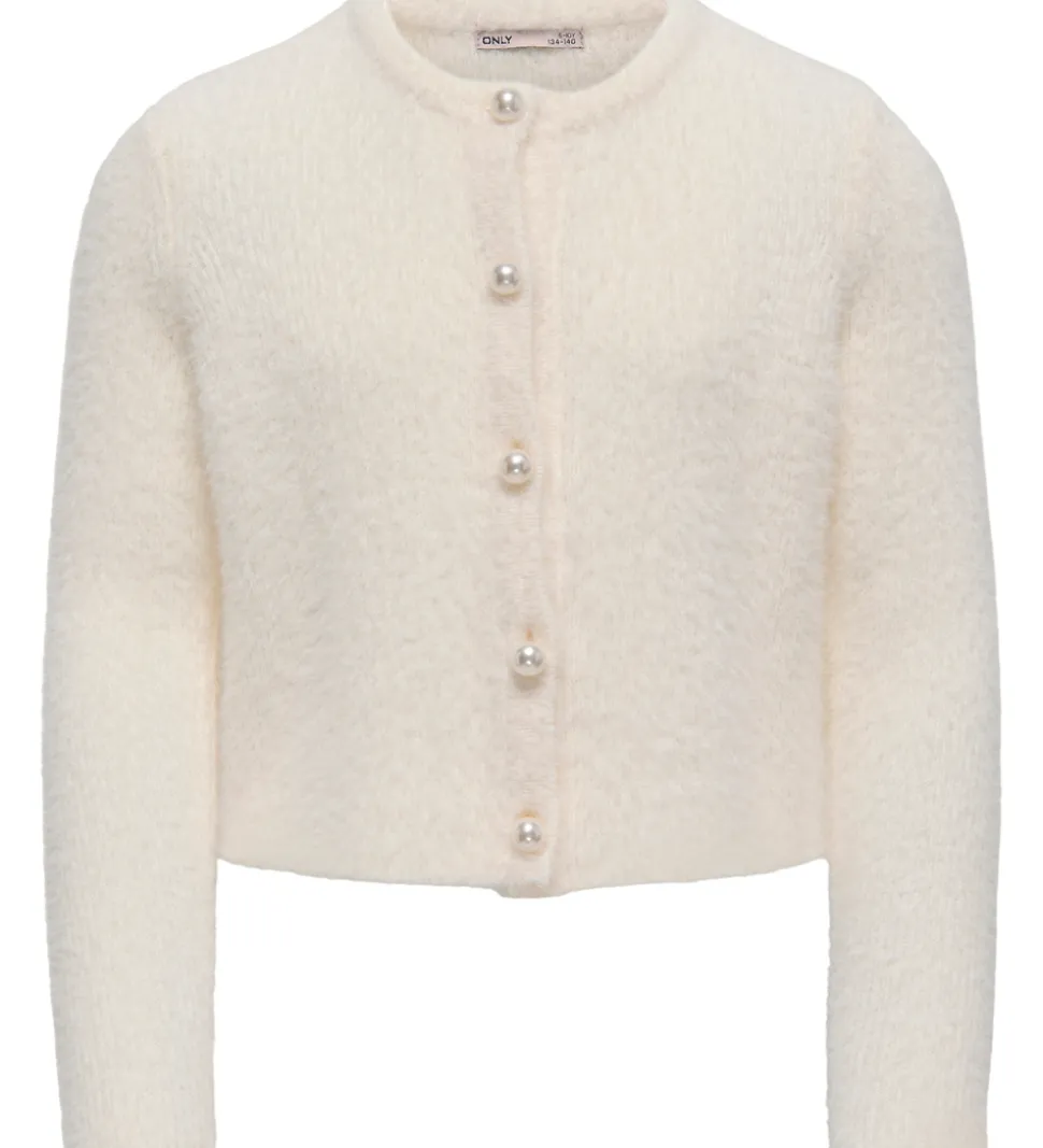 Indbydende cardigan fra Kids Only i en varm, cremefarvet nuance med en blød overflade. Cardiganen fra Kids Only har lange ærmer og en rund halsudskæring. De elegante perleknapper giver et stilfuldt udtryk. Designet er enkelt og tidløst, hvilket gør den til et alsidigt valg i garderoben.