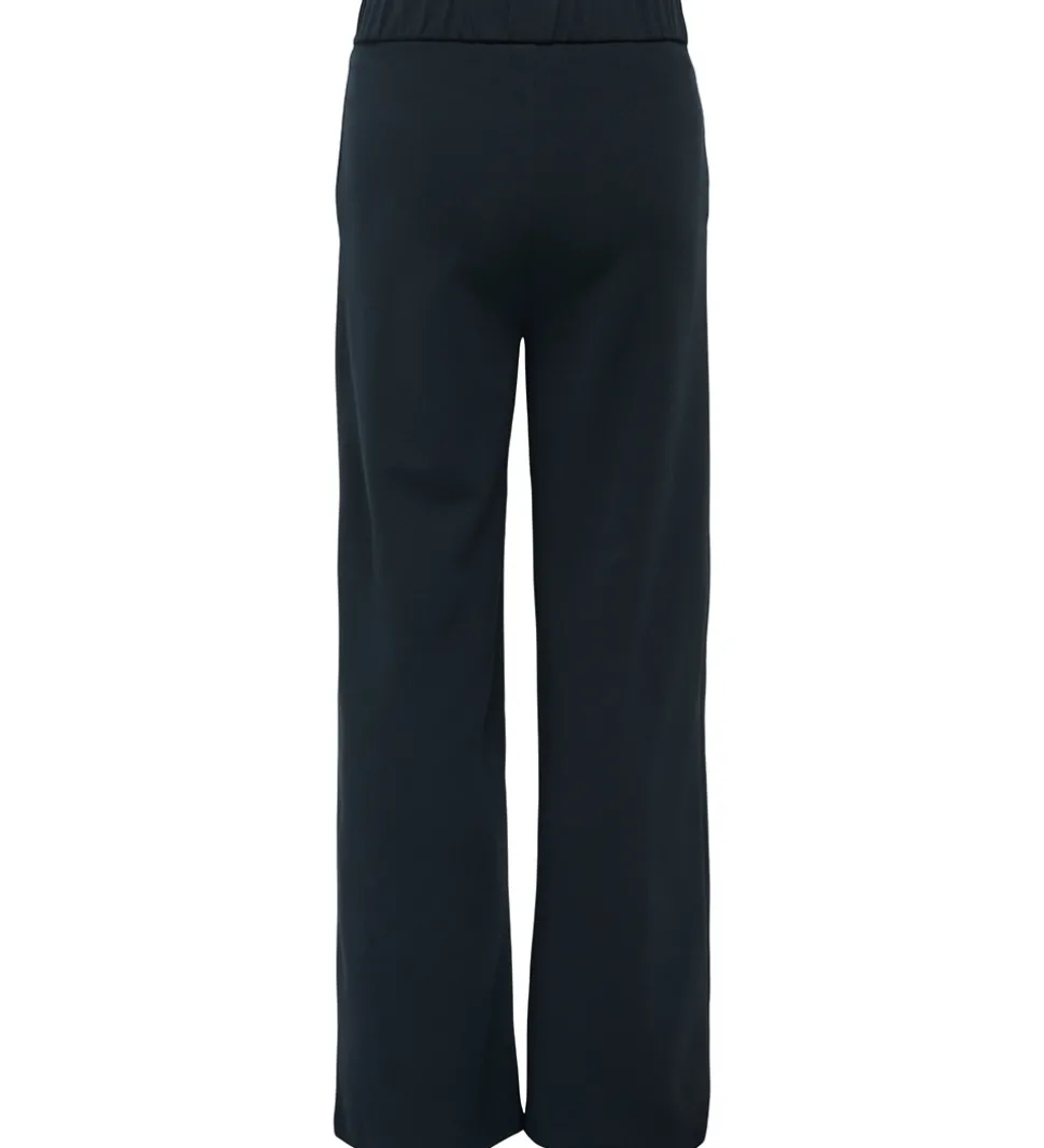 Elegant jeans fra Kids Only i mørkeblå denim. Kids Only jeansene har en afslappet pasform med vide ben. De lukkes fortil med en knap og lynlås, og langs taljen er der bæltestropper. Jeansene har tre lommer foran og to baglommer.