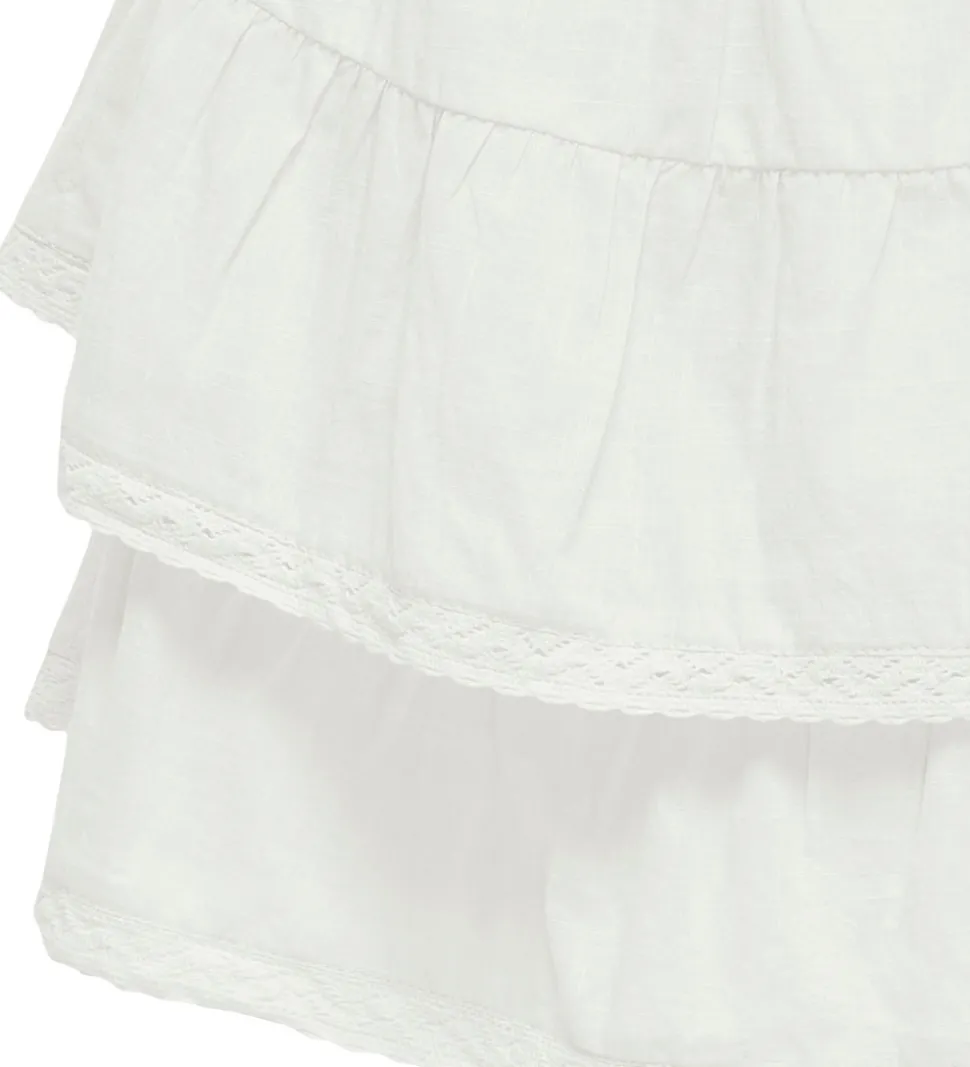 Lækker nederdel fra Kids Only i hvid med fine flæser og blonder nederst. Denne nederdel tilføjer et let og luftigt look, perfekt til varmere dage og sjove stunder.