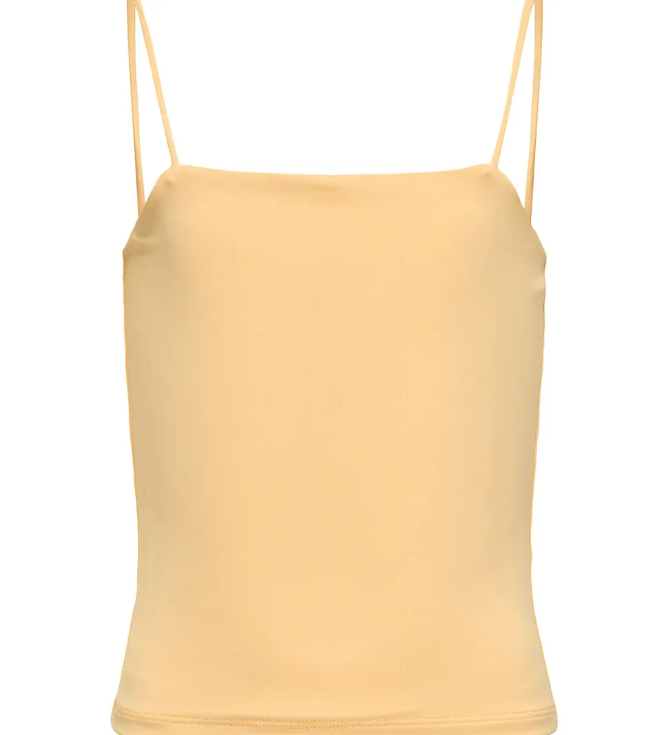 Skøn Kids Only top i lys orange. Toppen har smalle skulderstropper og et enkelt design, der gør den let at style. Toppen består af to lag og den er fremstillet i en meget blød og strækbar kvalitet.