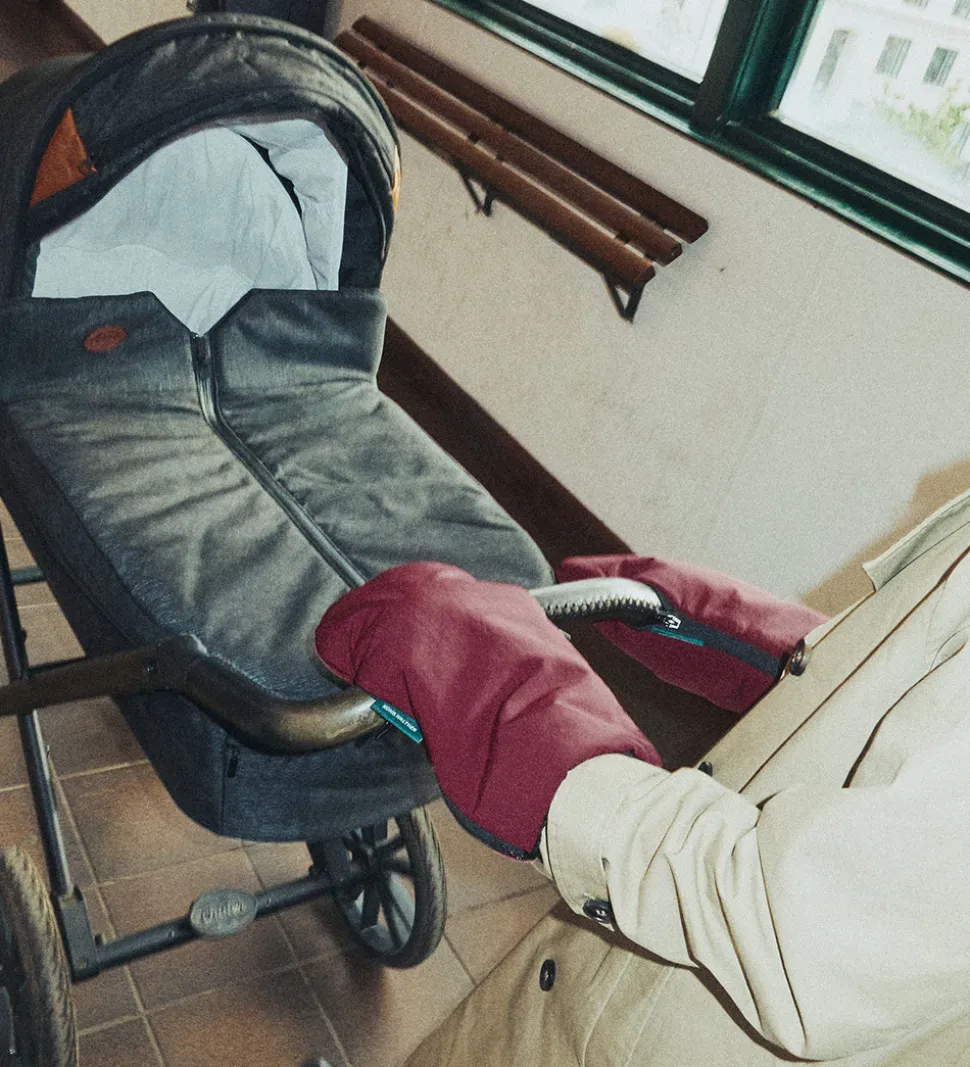 Praktiske Kong Walther barnevognshandsker i ensfarvet bordeauxrød.