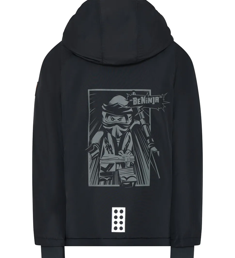 Fin LEGO® Ninjago vinterjakke i sort med et lille Ninjagpoprint på højre bryst og et stort på ryggen.