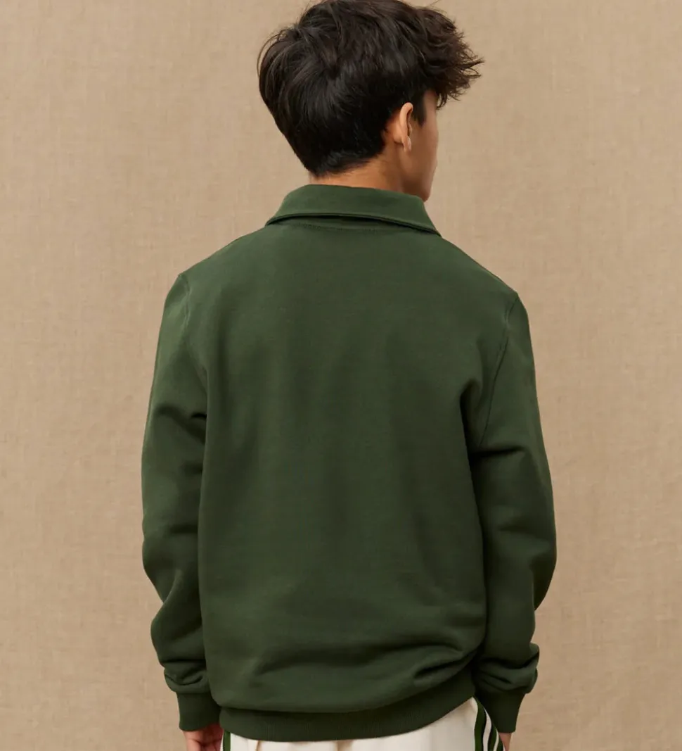 Stilren Les Deux sweatshirt i en dyb grøn nuance med teksten “YALE” trykt på fronten. Les Deux sweatshirten har en klassisk krave og knaplukning, hvilket giver et tidløst udtryk. På indersiden har sweatshirten blødt børstet bomuld.