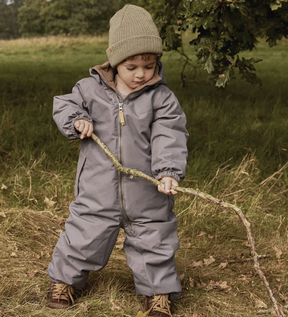 Smart Lil’ Atelier flyverdragt i mørkegrå. Flyverdragten har velplacerede refleksprint og -detaljer.