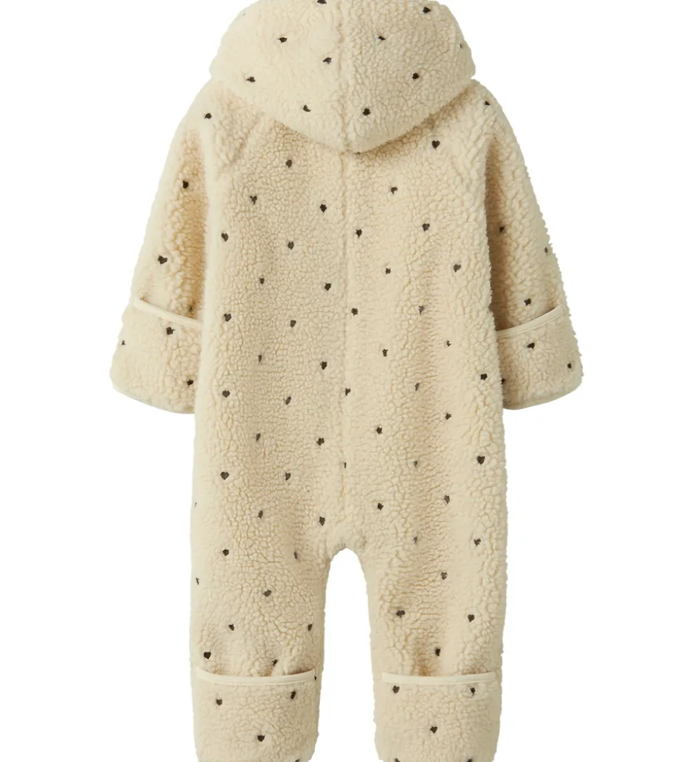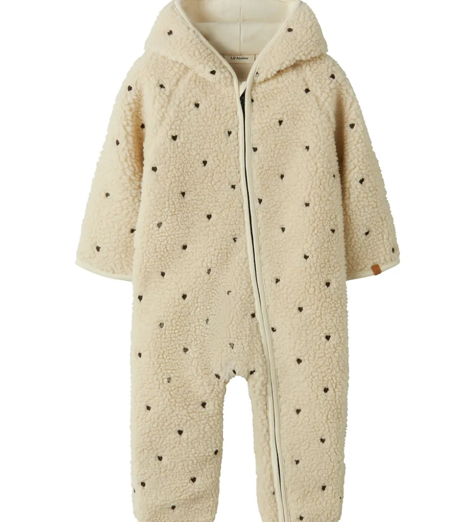 Hyggelig Lil’ Atelier køredragt i en blød cremefarve med små fine hjerter fordelt over det hele.