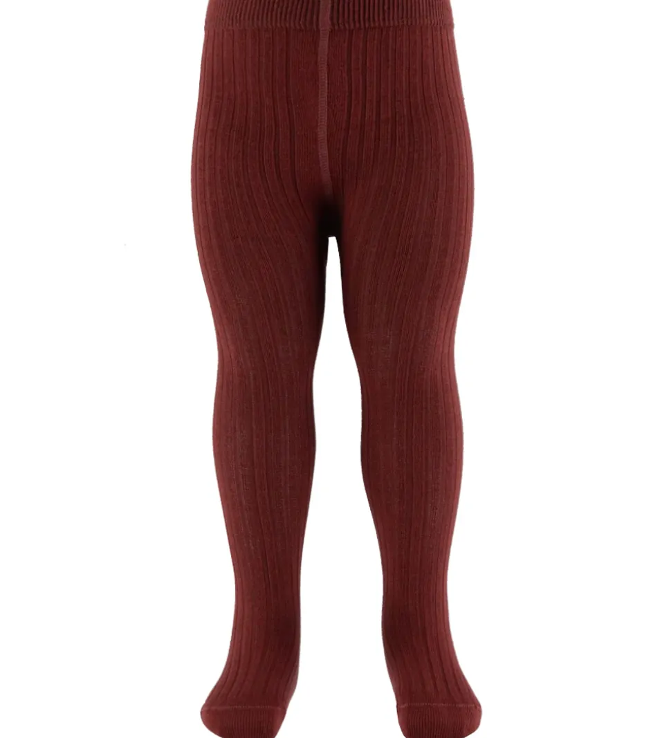 Elegante Lil Atelier strømpebukser i mørkerød med ribstruktur. Strømpebukserne har en behagelig elastik i livet og en god pasform.