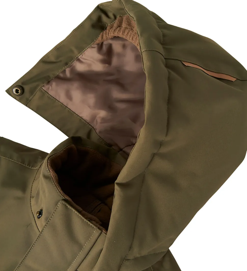 Smart Lil’ Atelier vinterjakke i mørk armygrøn. Vinterjakken har velplacerede refleksprint og -detaljer.