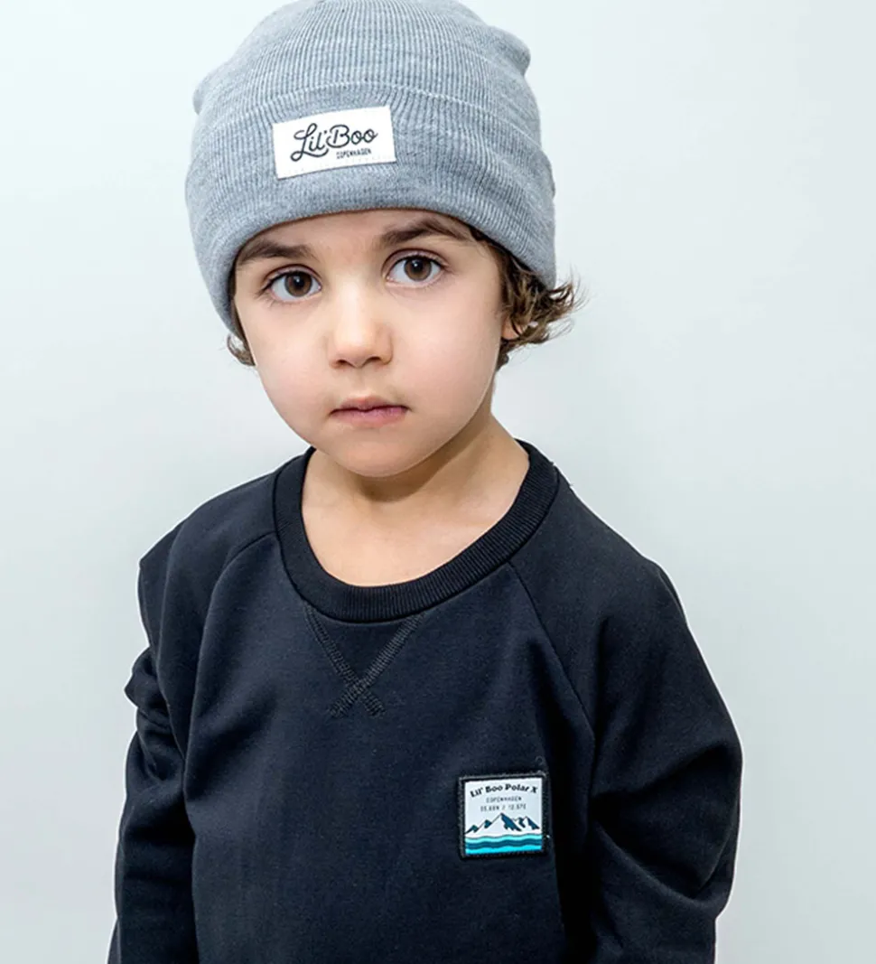 Stilfuld Lil’ Boo Copenhagen hue i en livlig, lys grå farve med et synligt logo foran, der tilføjer et karakteristisk præg.