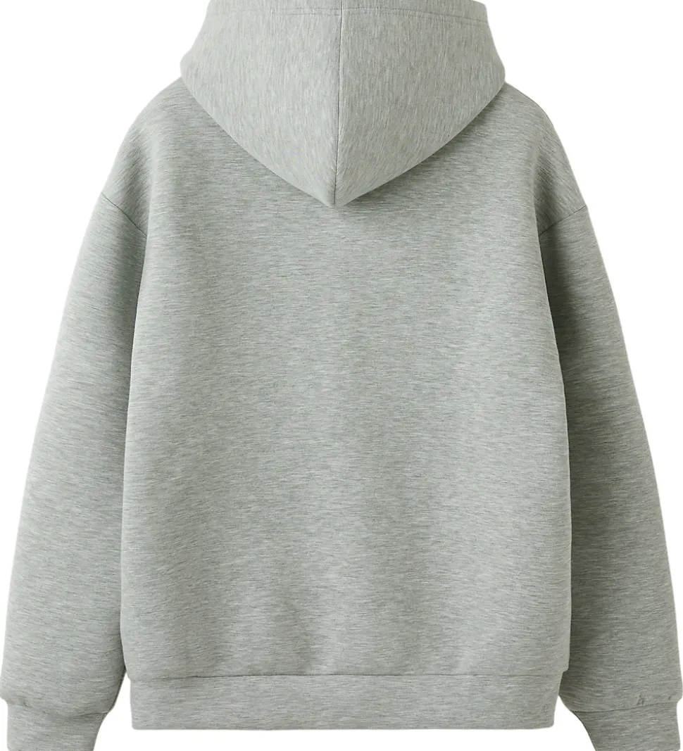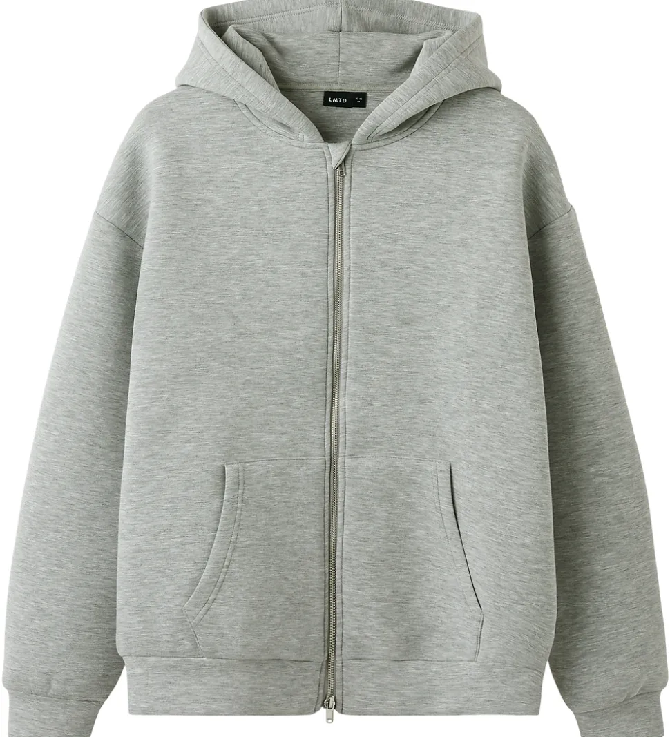 Smart LMTD cardigan i gråmeleret. LMTD cardiganen har en fastsyet hætte og gennemgående lynlås med to skydere. Fortil er der en opdelt kængurulomme, og cardiganen har brede kanter ved ærme- og taljeåbning. Cardiganen er fremstillet i en kraftig kvalitet.