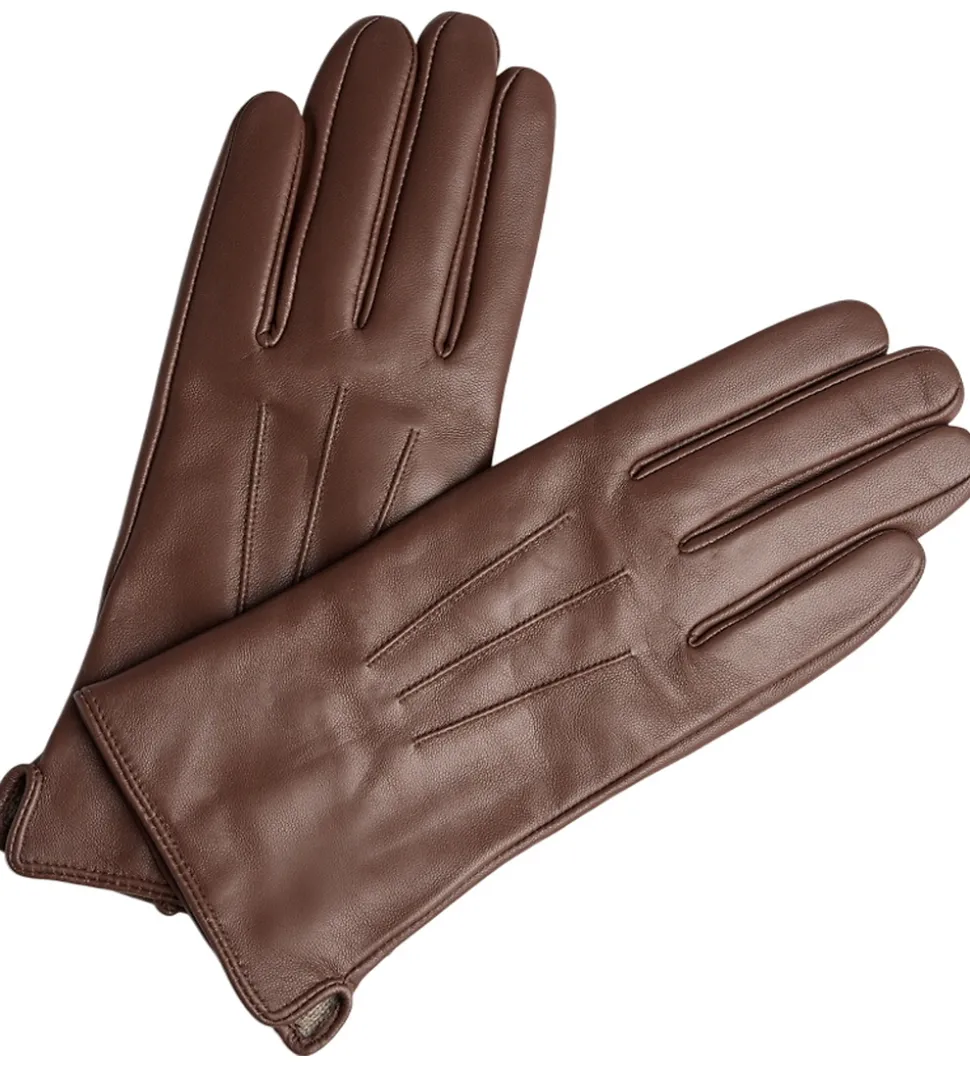 Stilfulde Markberg handsker i ensfarvet, mørkebrunt fårelæder. Markberg handskerne har et elegant design med fine detaljer og en behagelig pasform, der giver både komfort og varme til hænderne.