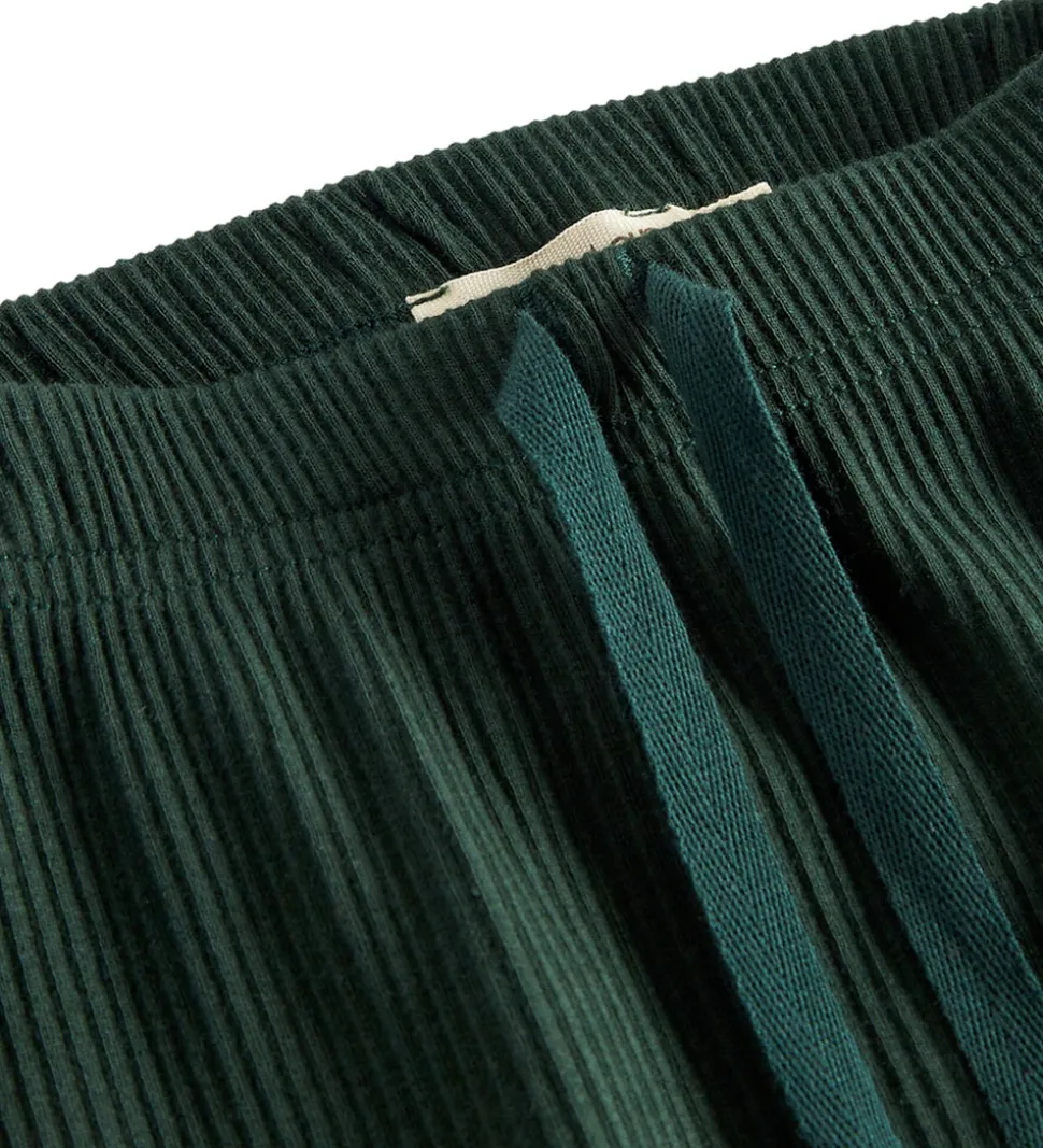 Flotte bukser fra MarMar i en dyb, mørkegrøn nuance. Bukserne fra MarMar har en ribbet struktur, der fremhæver det enkle design. Modellen er udstyret med en elastisk talje, der kan justeres med snøre for optimal pasform. Benene afsluttes med lige kanter, der giver et klassisk look. Der er ingen synlige print eller mønstre, hvilket understreger det stilrene udtryk.