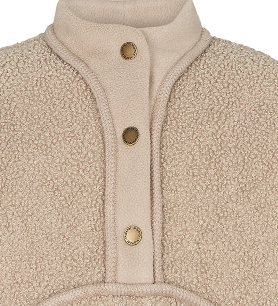 Lækker MarMar fleecejakke i ensfarvet beige teddyfleece, og i halsåbningen samt på stolpelukningen er der almindeligt, blødt fleece.