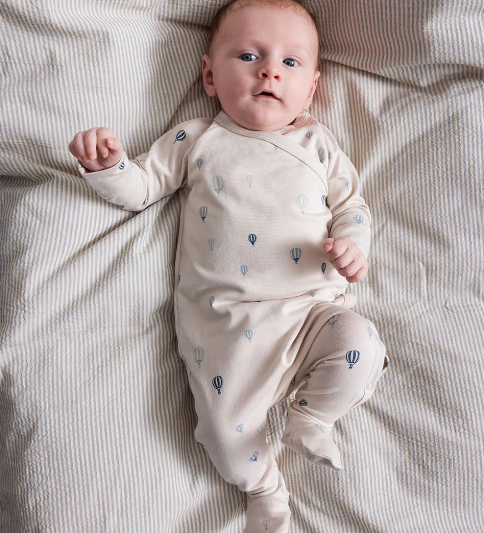 Elegant MarMar heldragt i en lysebeige nuance med et delikat luftballonprint i blå nuancer.