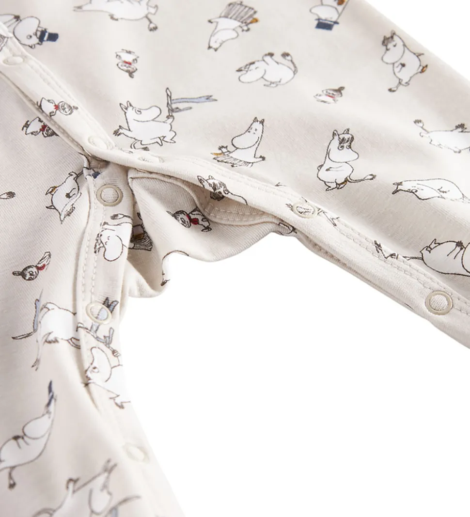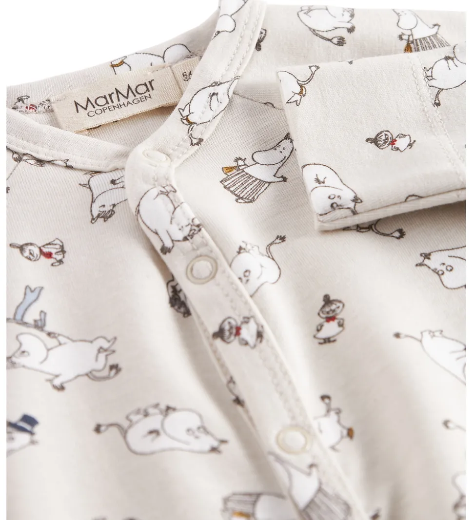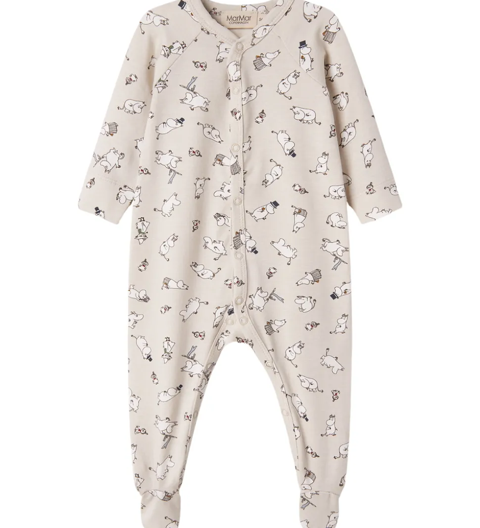 Elegant MarMar heldragt i en lys, beige nuance med et charmerende print af Moomins-figurer.