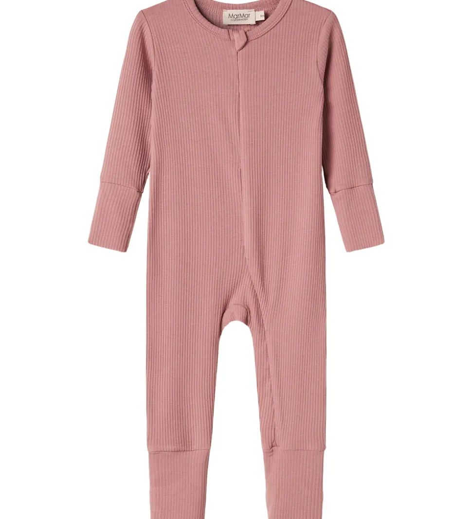 Flot MarMar heldragt i en varm rosa nuance med en fin ribstruktur.