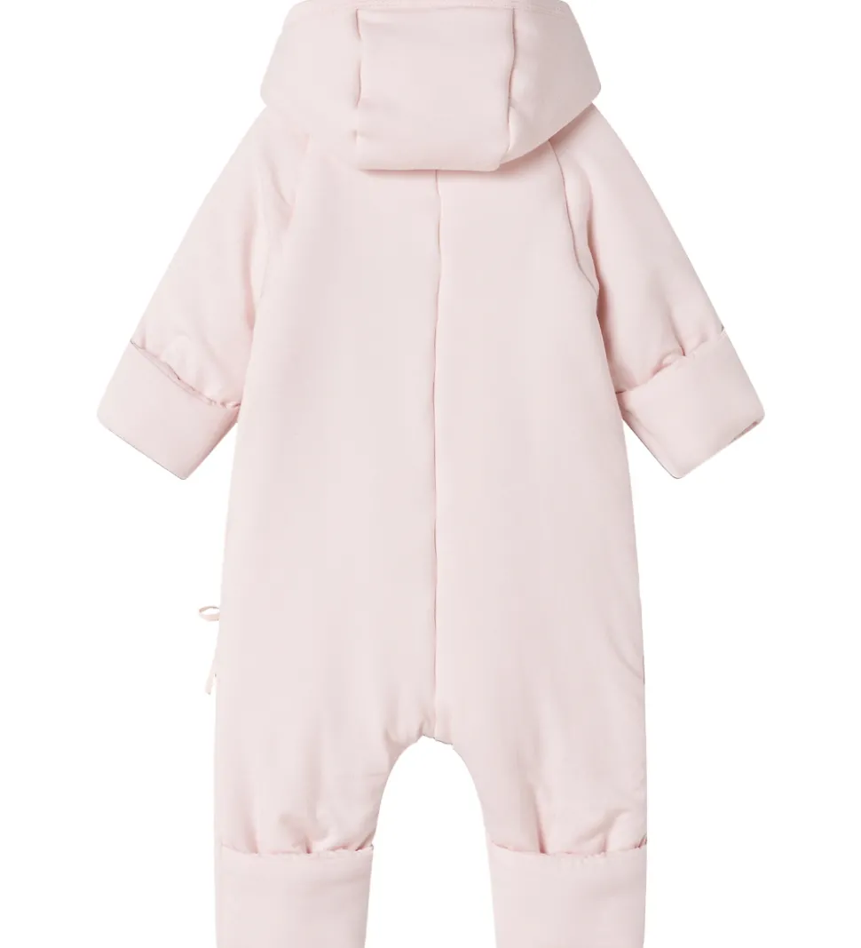 Køredragten har lange ærmer og ben med ombuk samt en praktisk hætte. Den har en slå-om åbning med bånd og trykknapper for nem påklædning. MarMar køredragten er lavet i blødt materiale og har en let vattering, der giver en behagelig pasform.